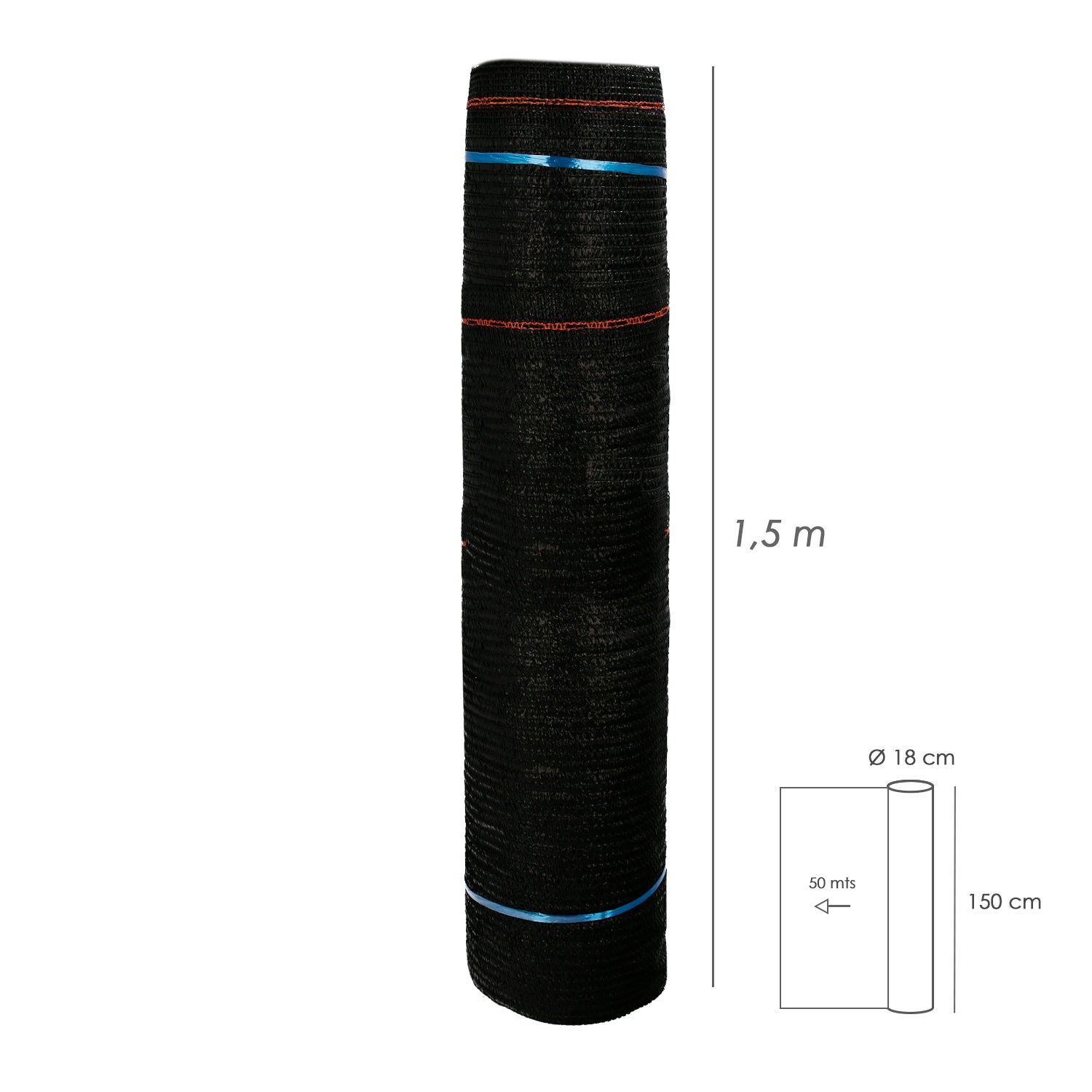 Black Shading Net 1.5 Meters Roll 50 Meters, Reduces Radiation, Garden and Terrace Protection, Regulates Temperature, Black Color