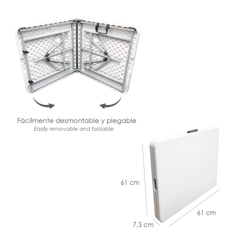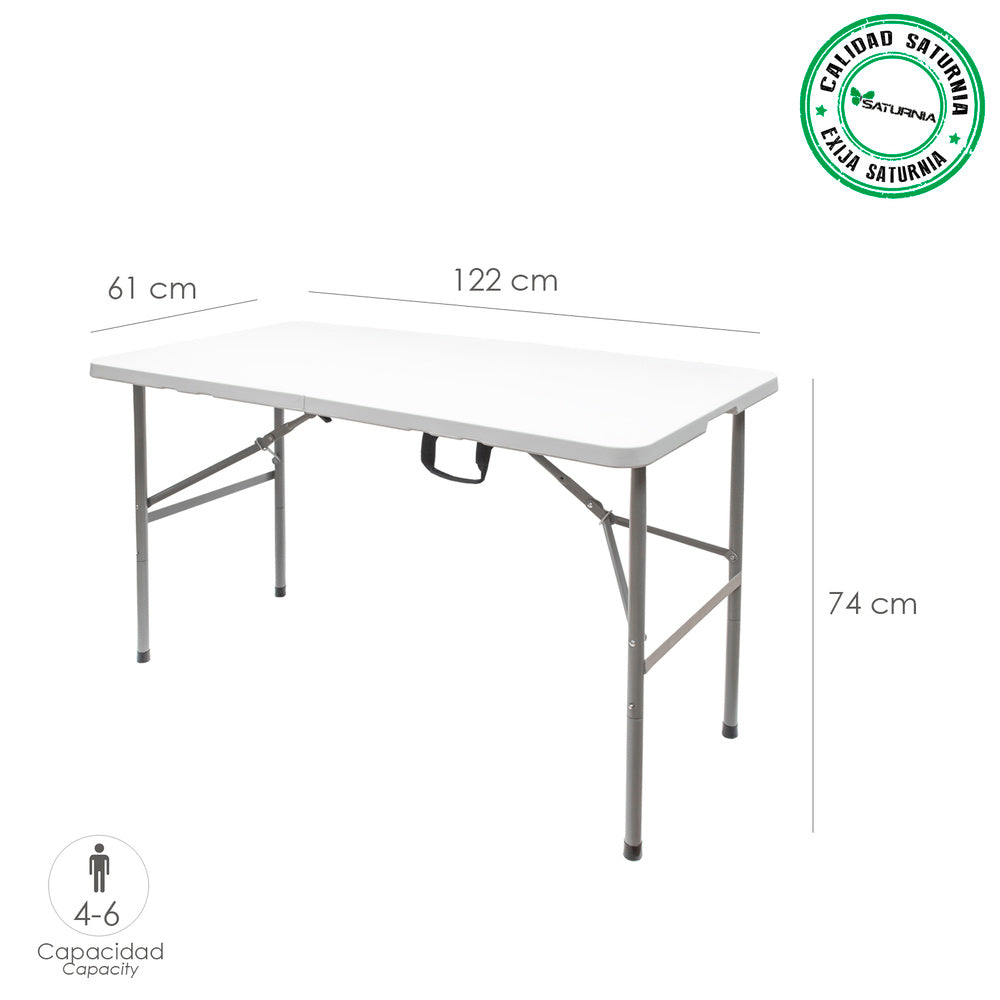 Mesa Plegable Rectangular HDPE 122x61x74 cm. Color Blanco