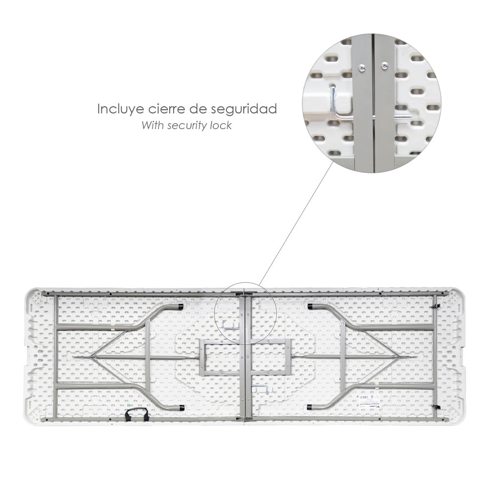 Mesa Plegable Rectangular HDPE 244x76x74 cm. Color Blanco