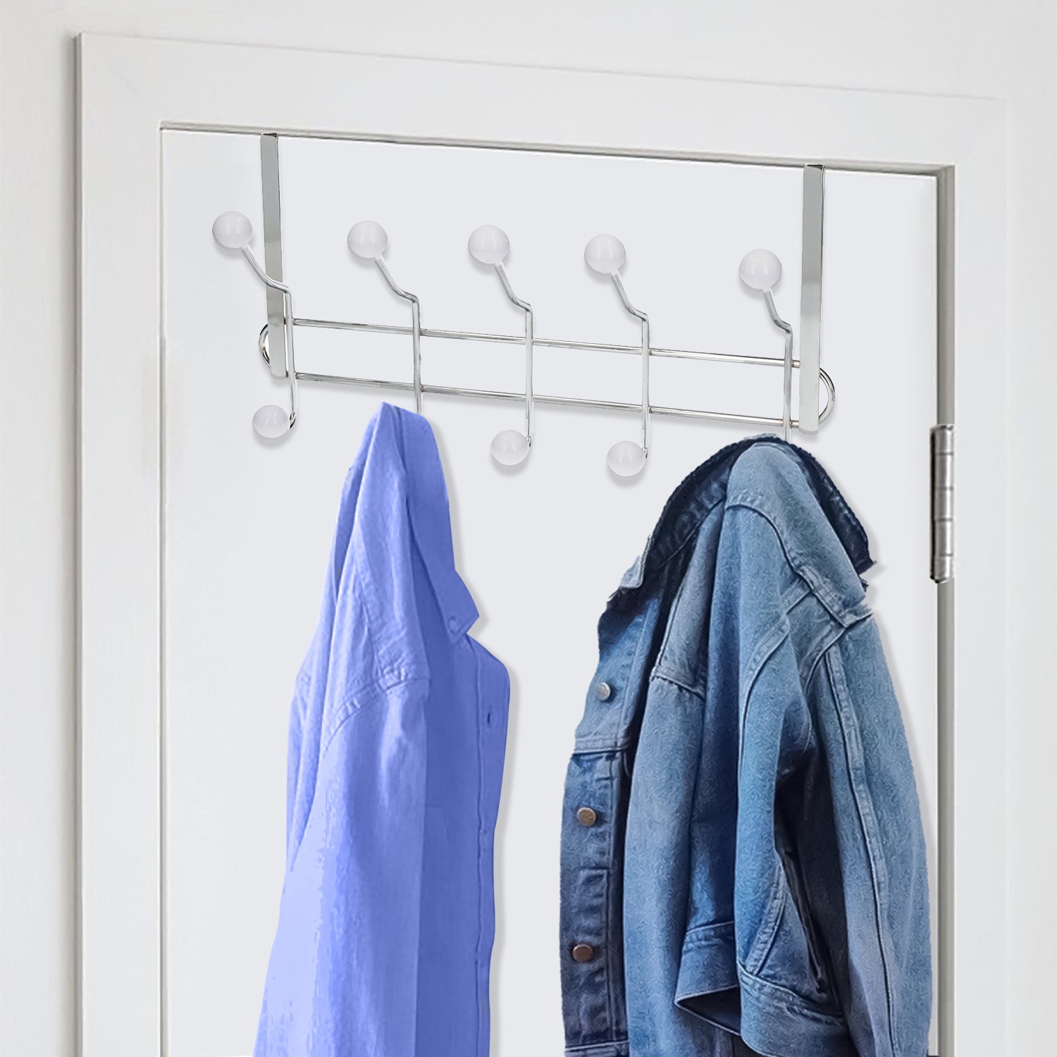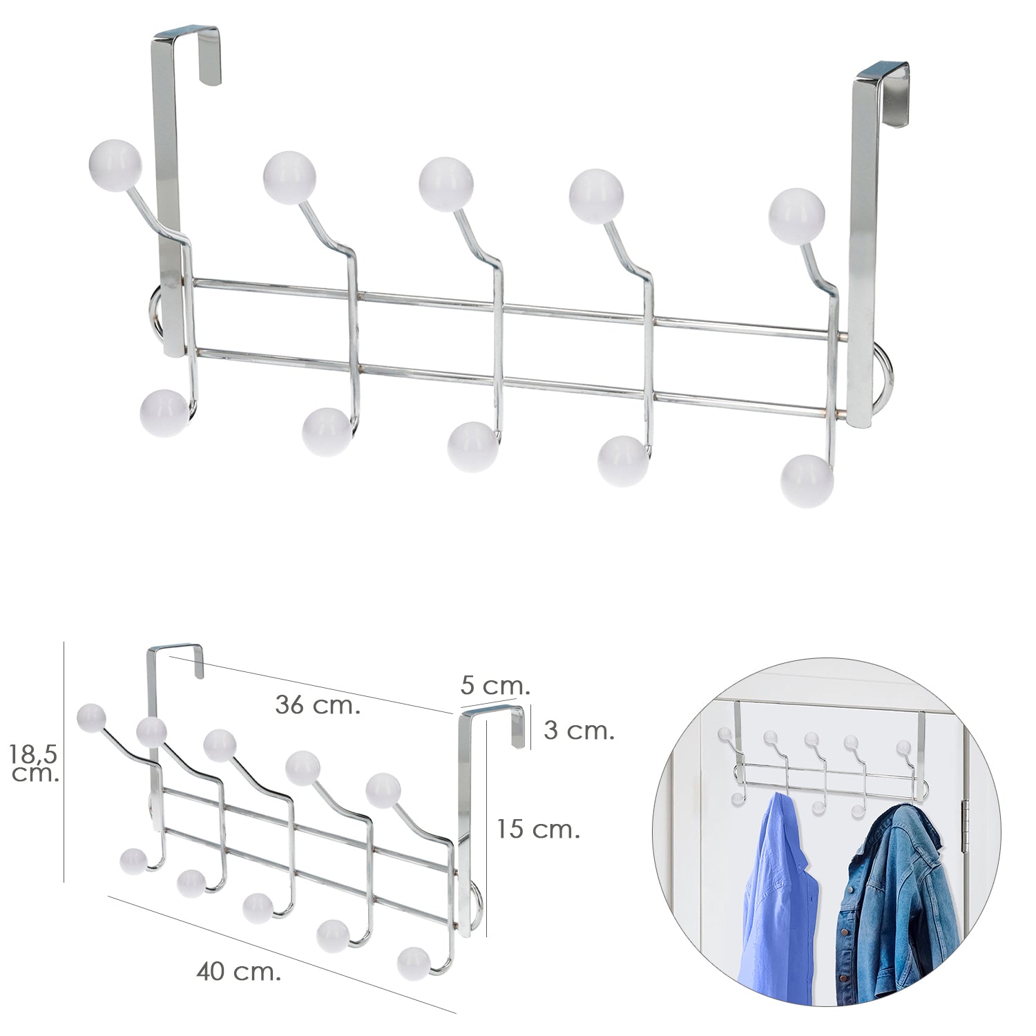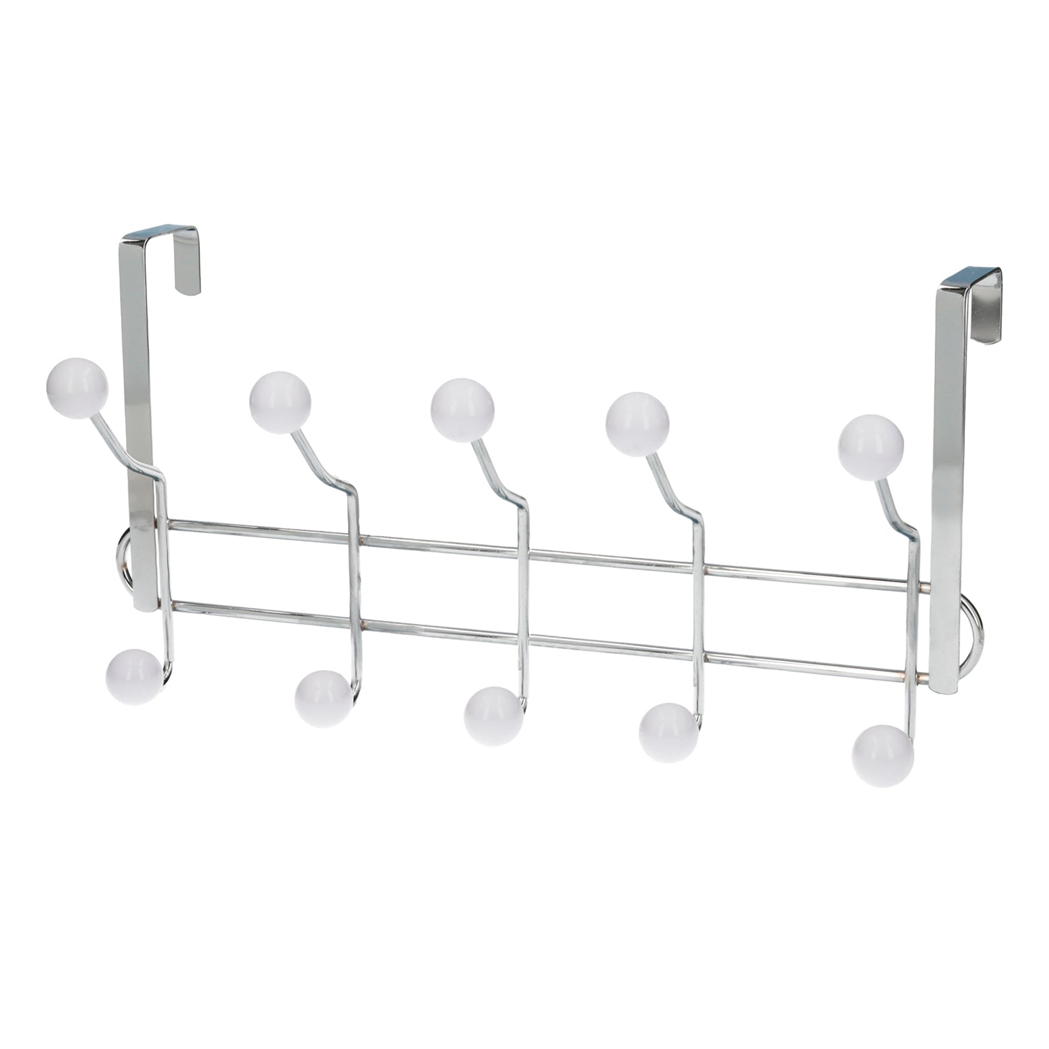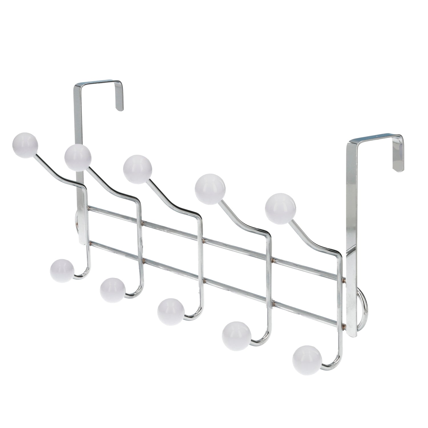 Chrome Door Hanging Coat Rack 5/10 Hooks. White Finish.