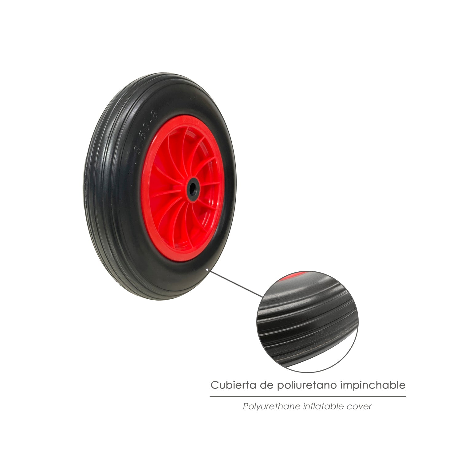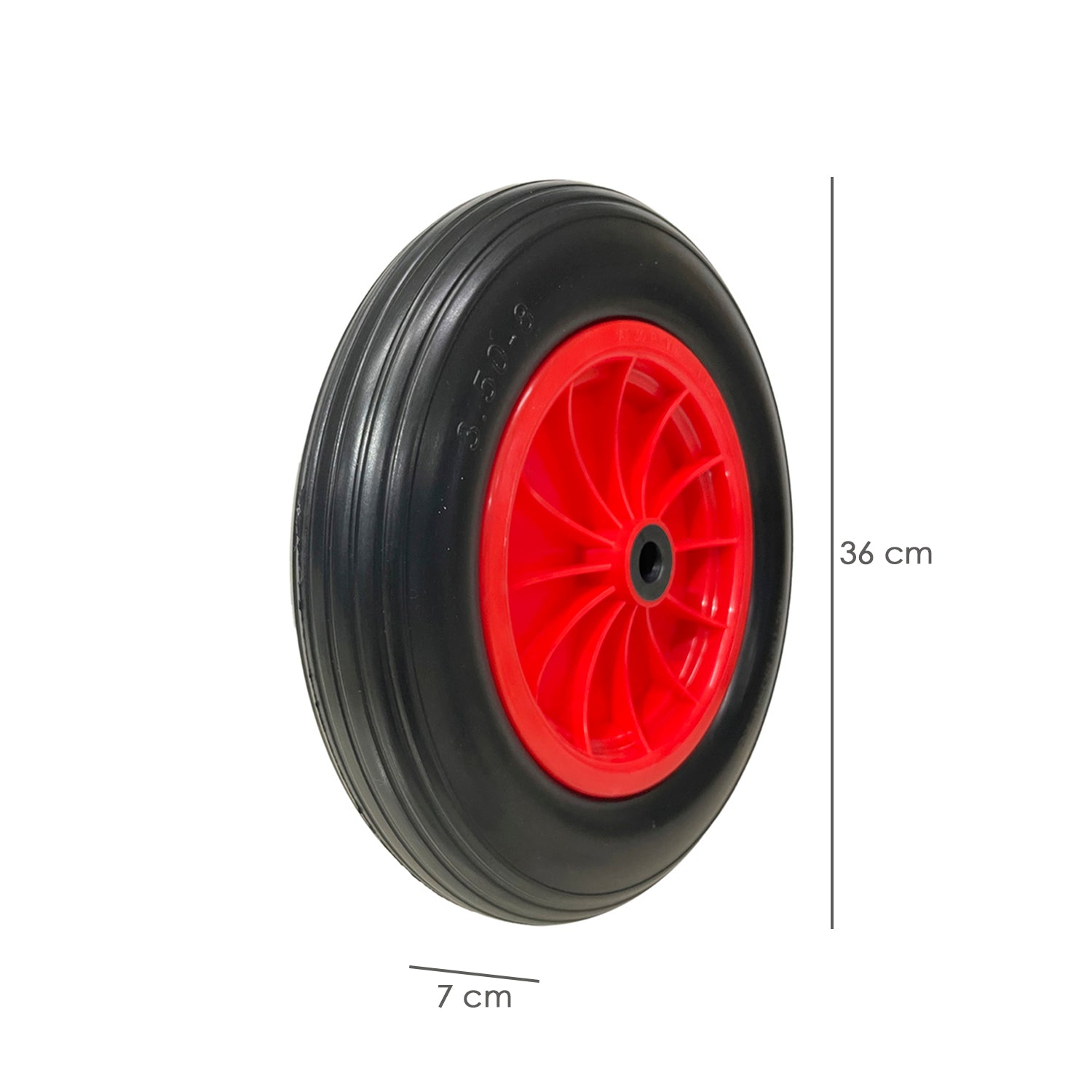 Greenhouse Wheelbarrow Wheel Polyurethane Puncture-proof Plastic Rim, Ø 360 mm. Axle Ø 20 mm.
