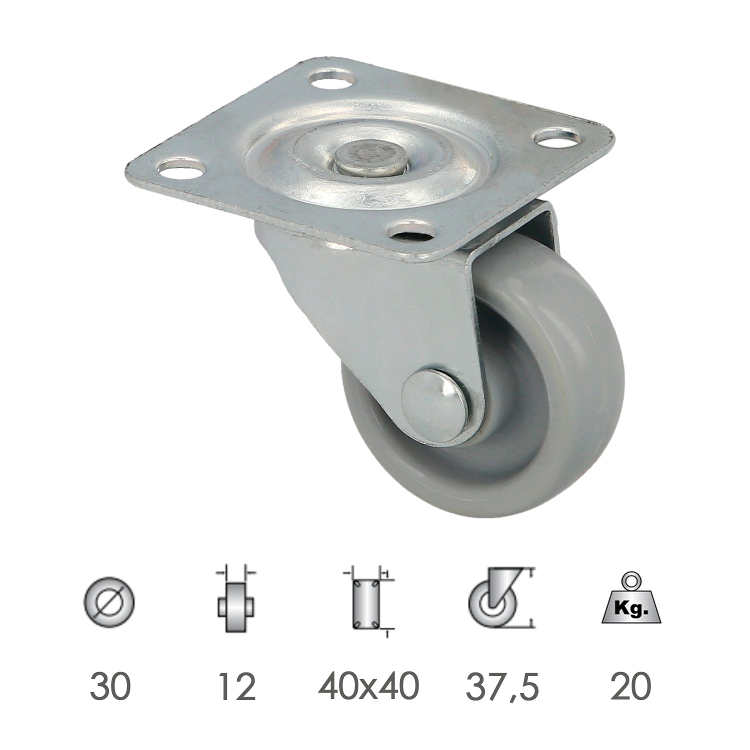 Domestic Wheel Ø 30 mm. With 40x40 mm Plate.