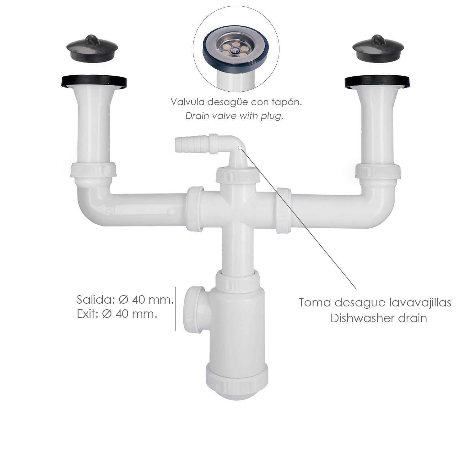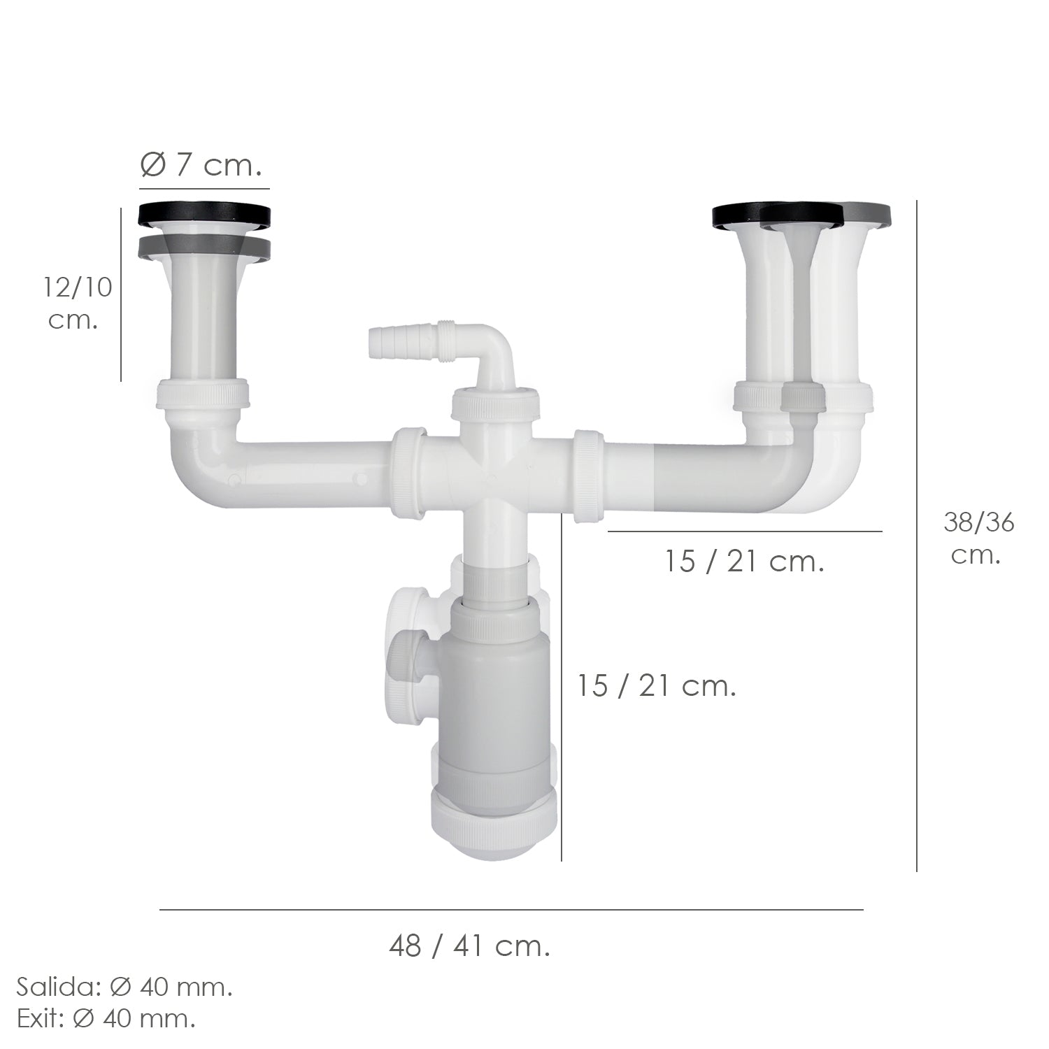 Double Siphon With Extendable Valve 1-1/2" With Ø 70 mm Drains. Kitchen Sink Siphon, Drainage Siphon