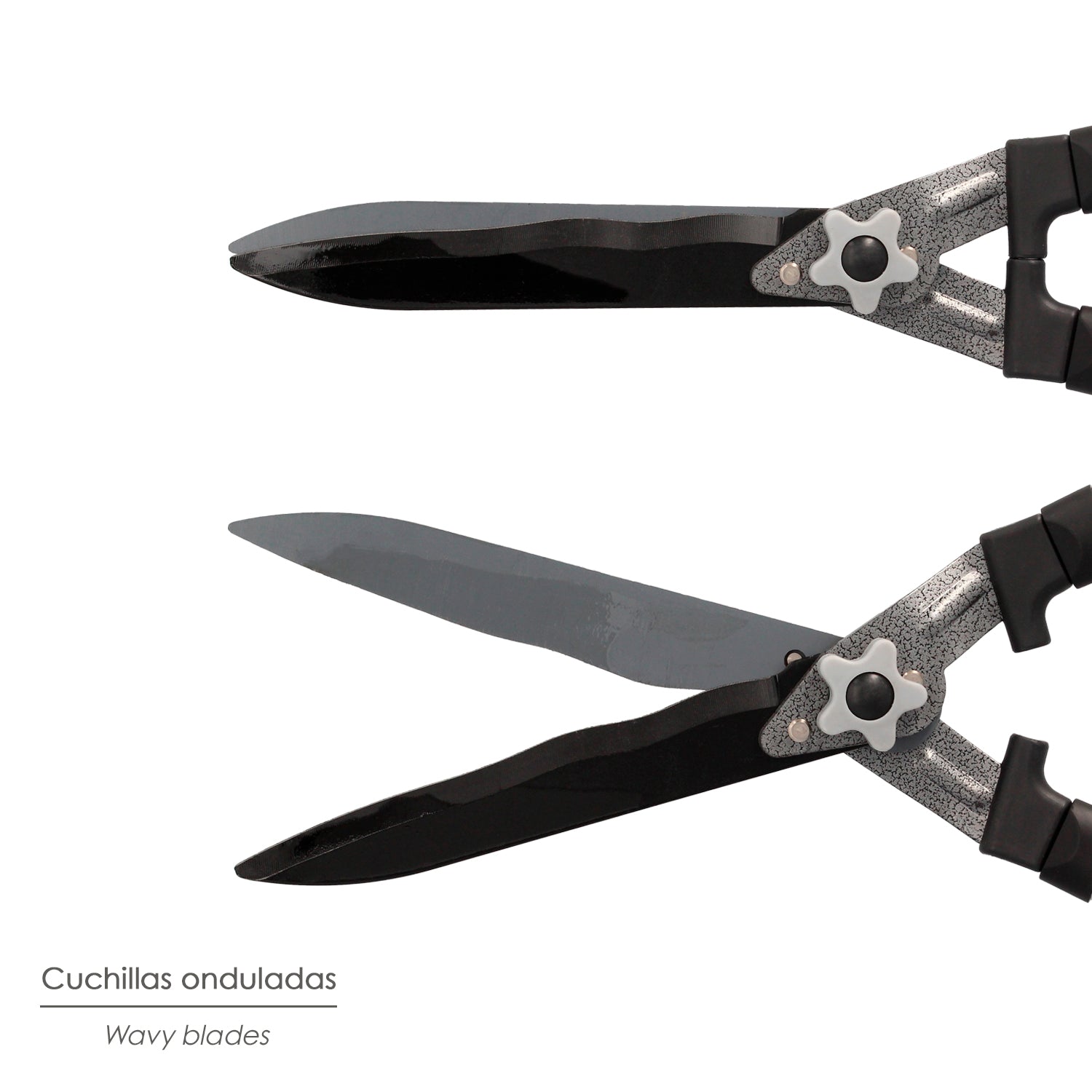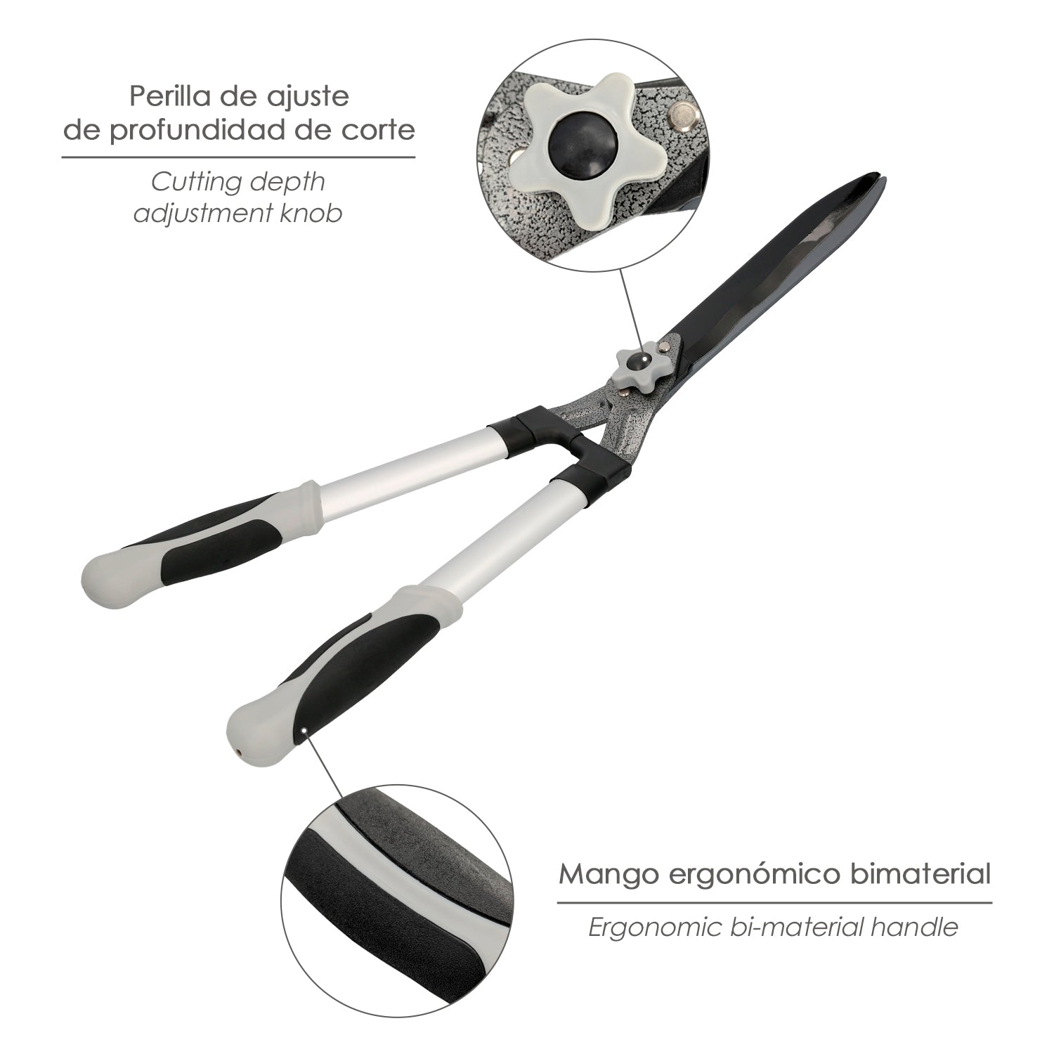 Hedge Pruning Shears 2 Hands Aluminum 63 cm. Non-stick Steel Blades, TPR Handle, Cutting Adjustment