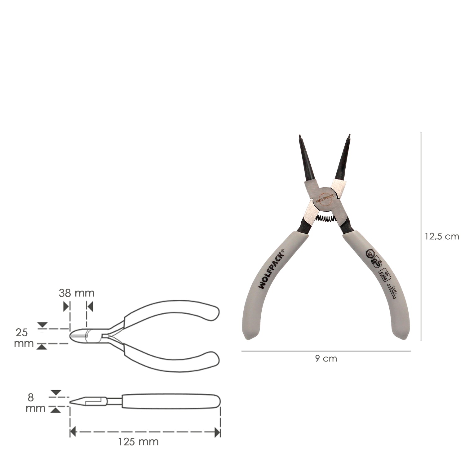 Alicates Arandelas Interiores Recto 125 mm. Acero Din 5256. Anillos De Presion, Anillos De Retención, Arandelas Circlips