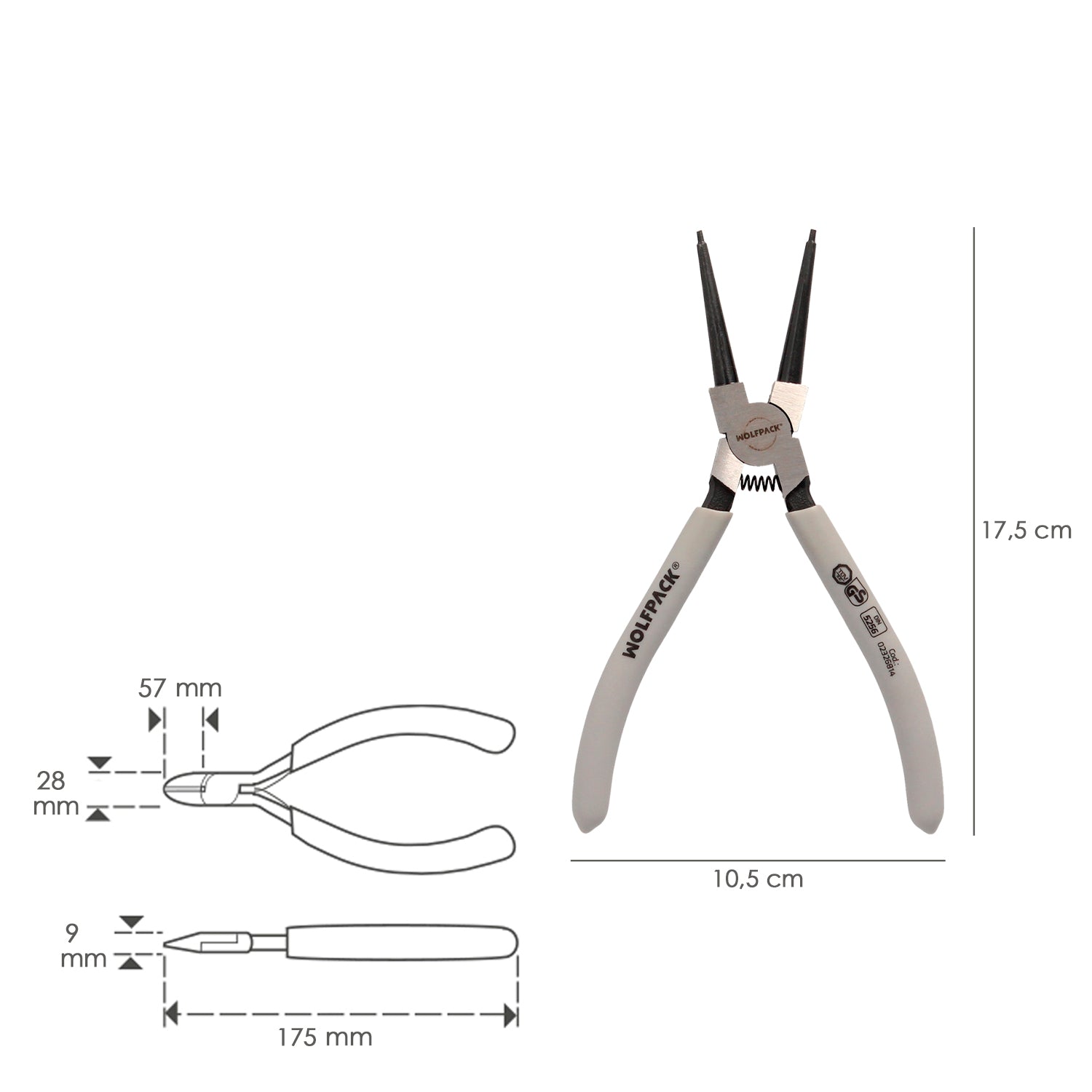 Alicates Arandelas Interiores Recto 175 mm. Acero Din 5256. Anillos De Presion, Anillos De Retención, Arandelas Circlips