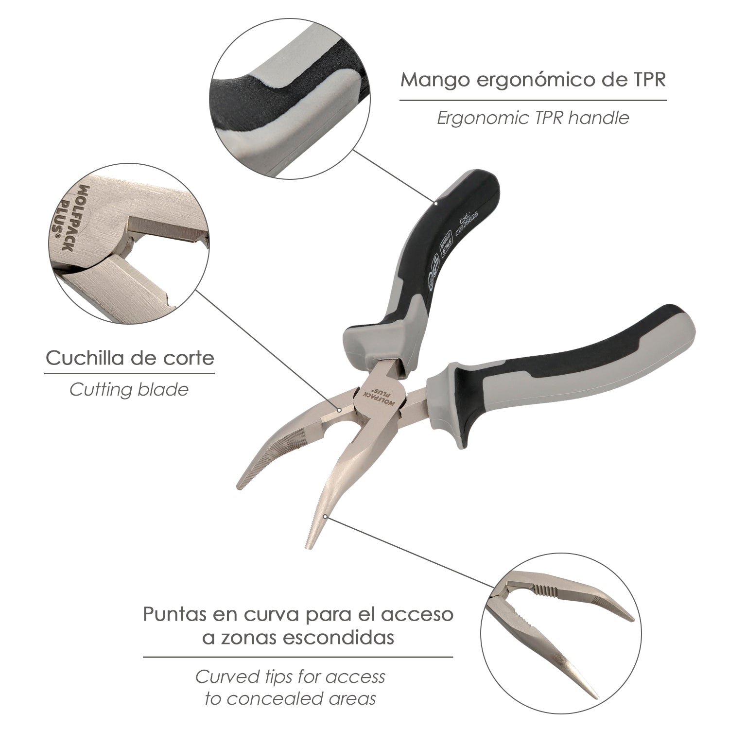 Alicates Boca Curva 150 mm. Acero Cromo Vanadio DIN-ISO 5745 Alicates Punta Curva, Alicates Boca Curva Larga,