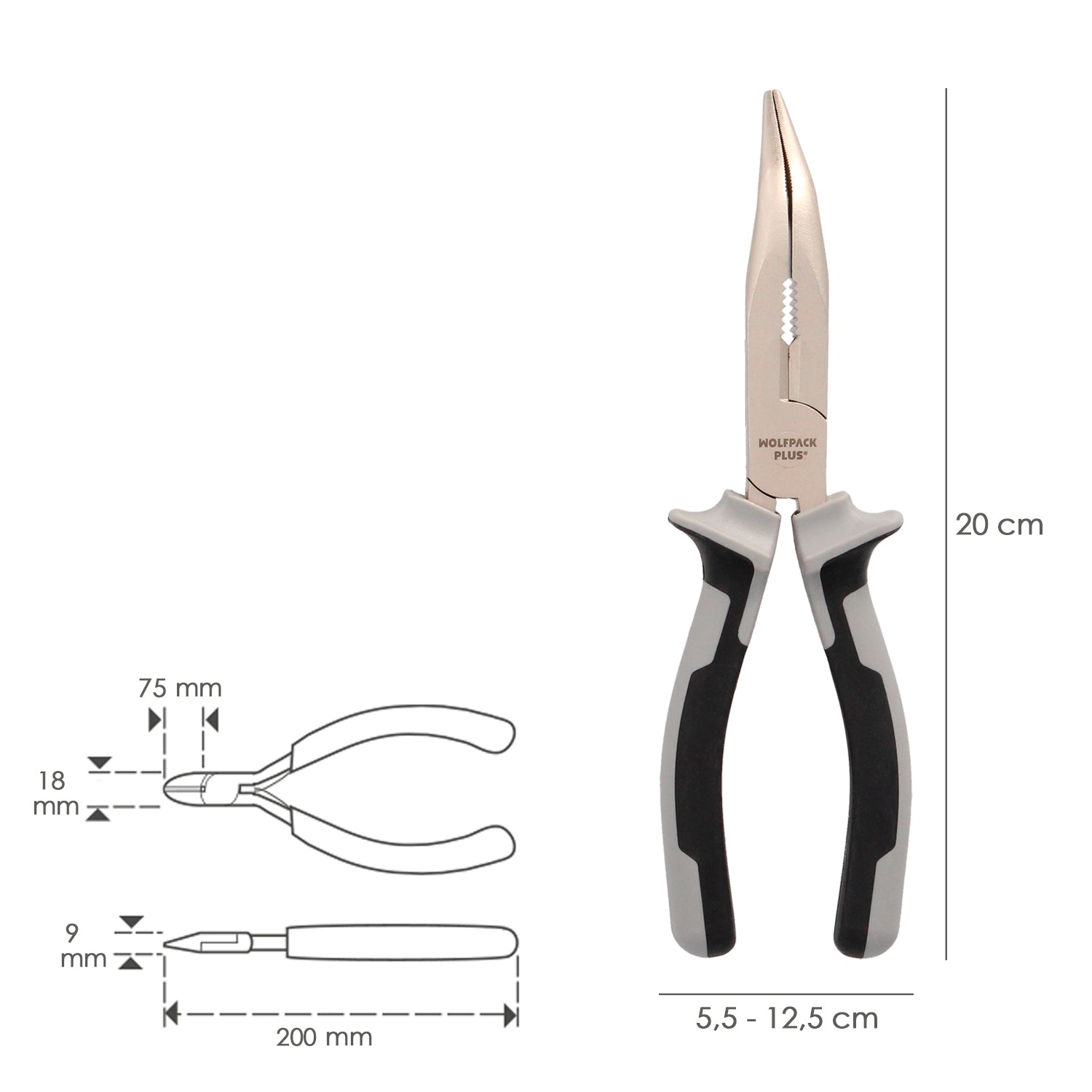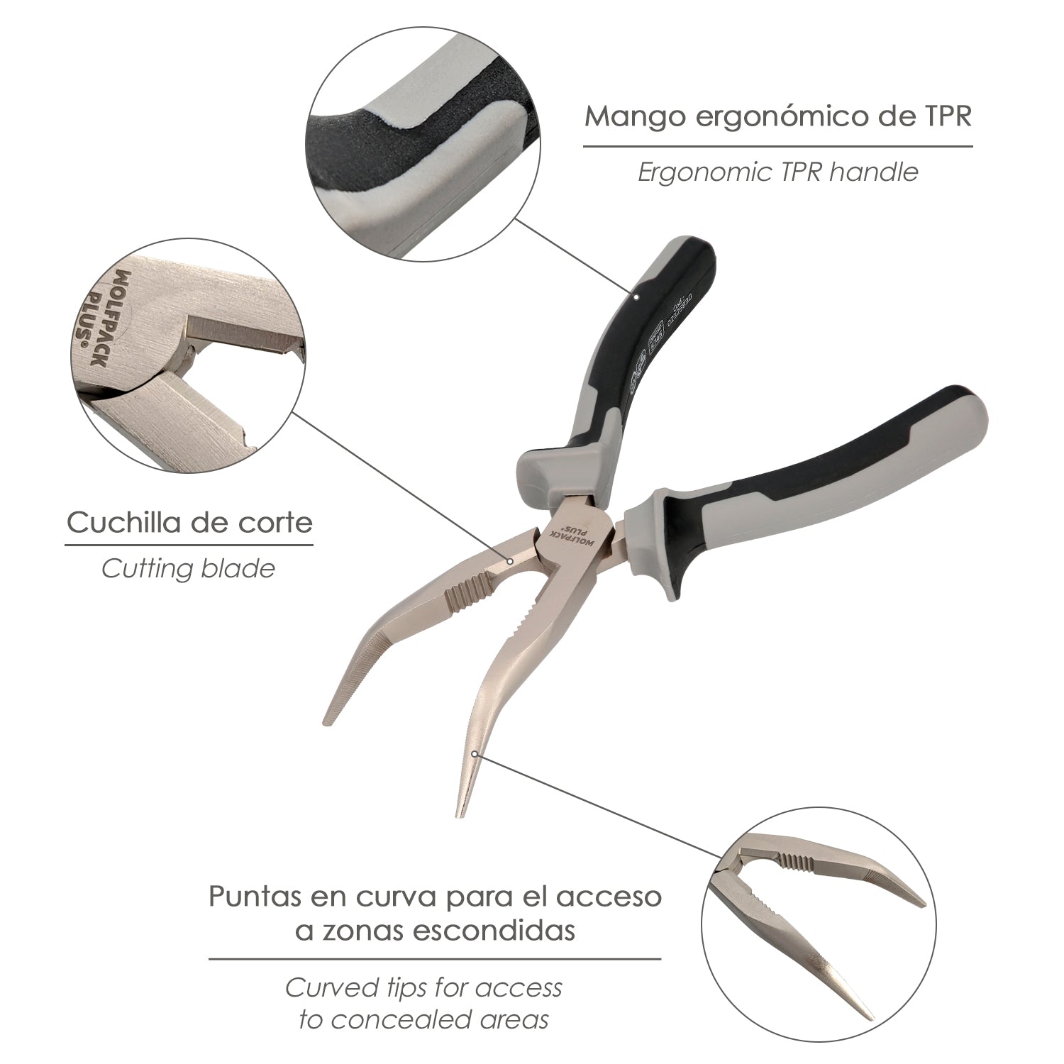 Alicates Boca Curva 200 mm. Acero Cromo Vanadio DIN-ISO 5745 Alicates Punta Curva, Alicates Boca Curva Larga,