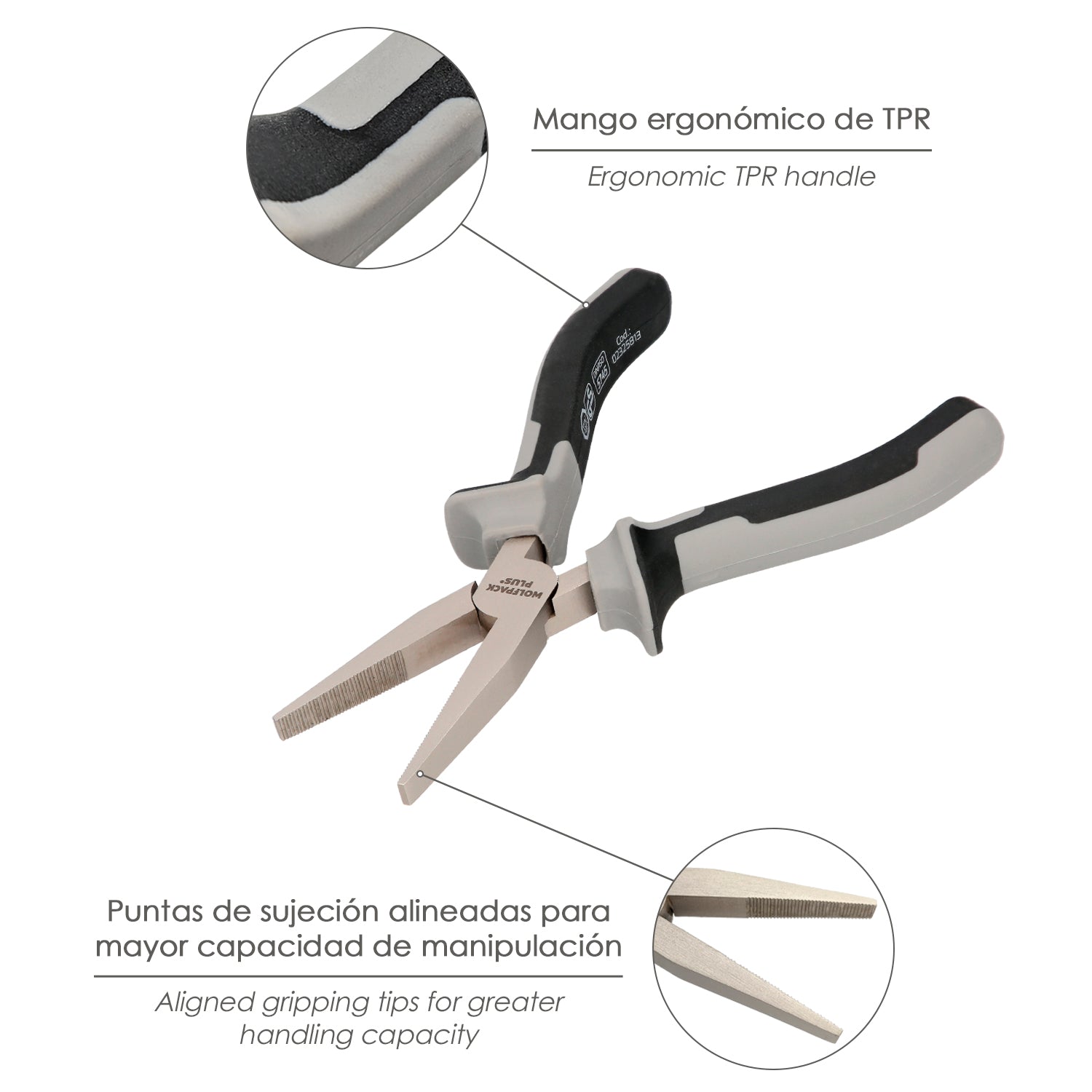 Alicates Boca Plana 150 mm. Acero Cromo Vanadio DIN-ISO 5745 Alicates Punta Plana, Alicates Boca Plana Larga,