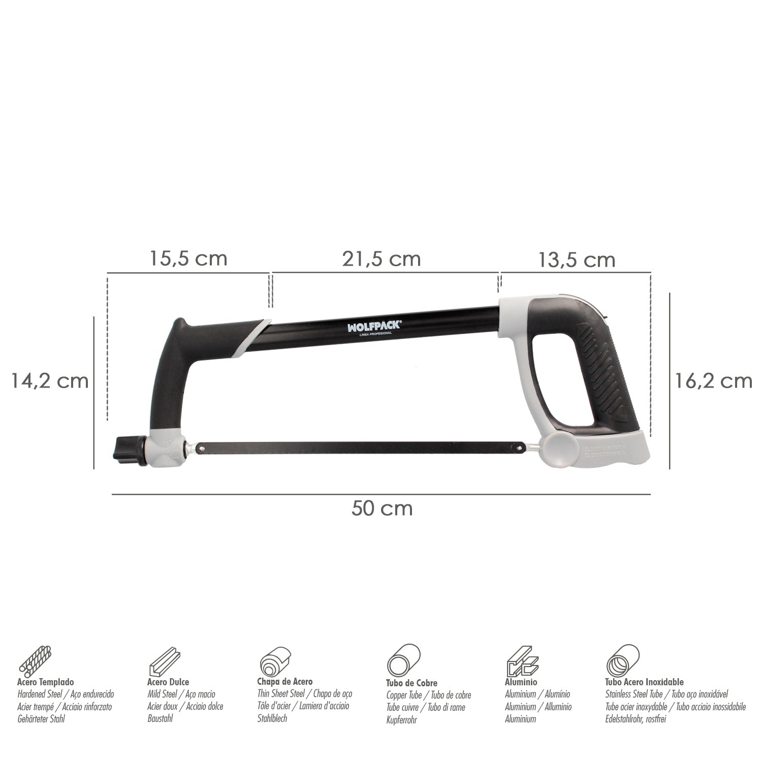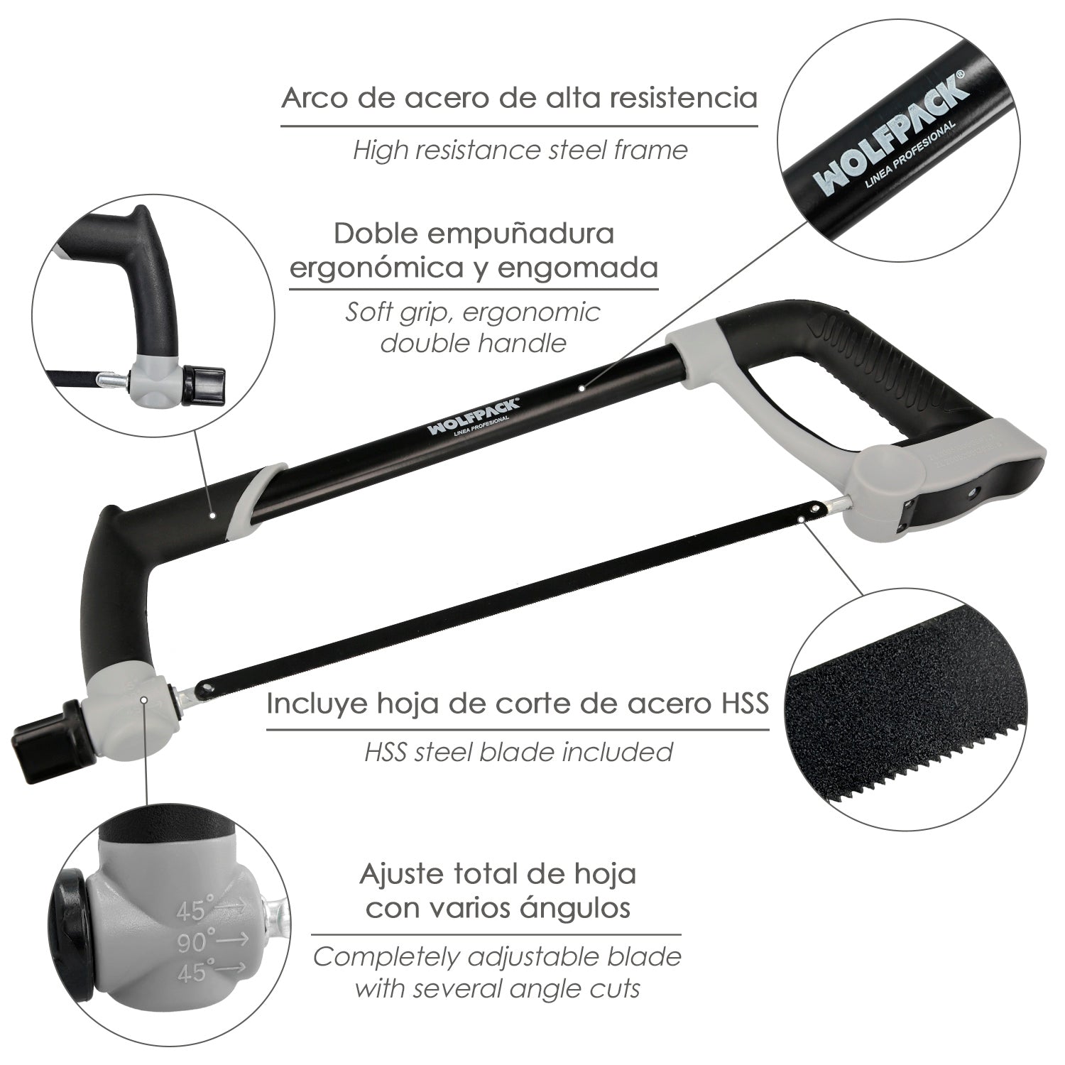 Arco Sierra Acero Con Doble Empuñadura Engomada, Angulo Corte Ajustable. Corta Acero, Aluminio, Madera, Plastico, Cobre