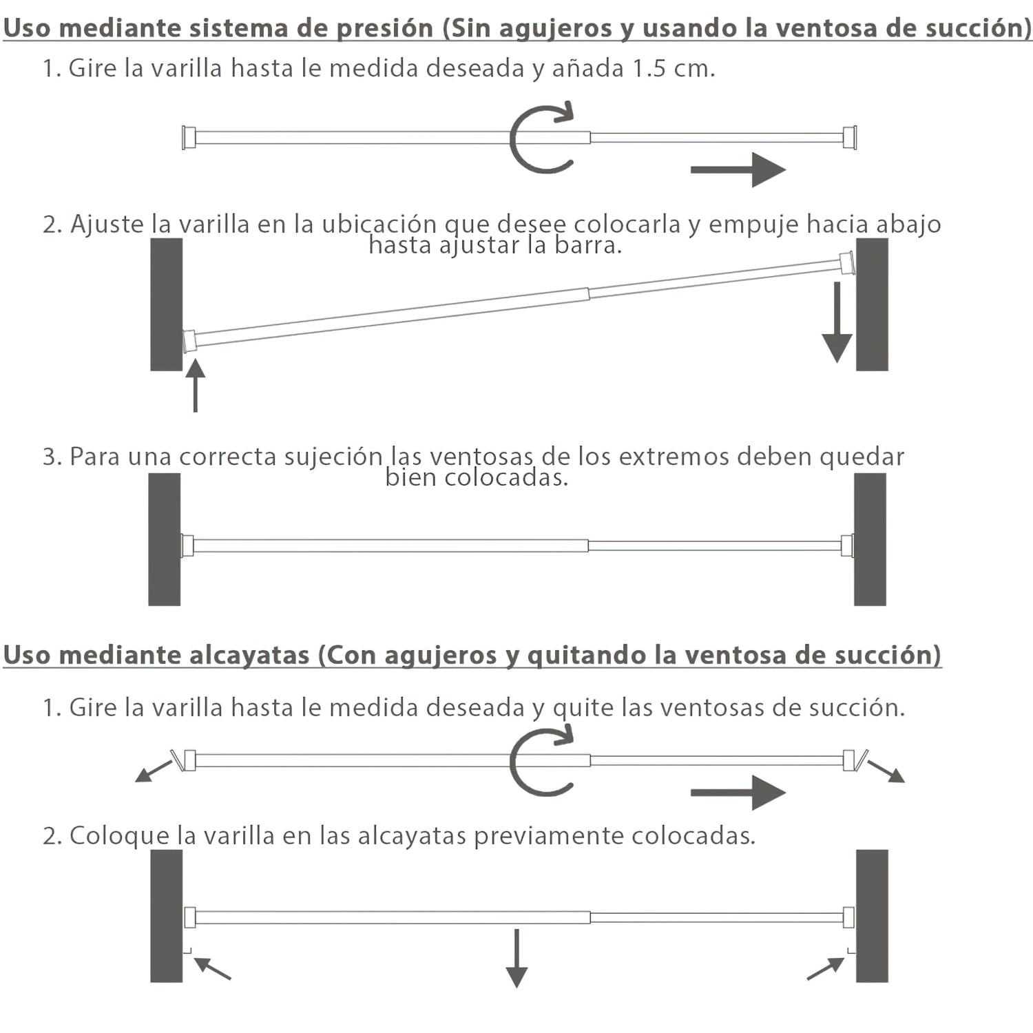 Barra Visillo Extensible 60/105 cm. con Muelle Presion, Soportes y Ventosas (2 Piezas)