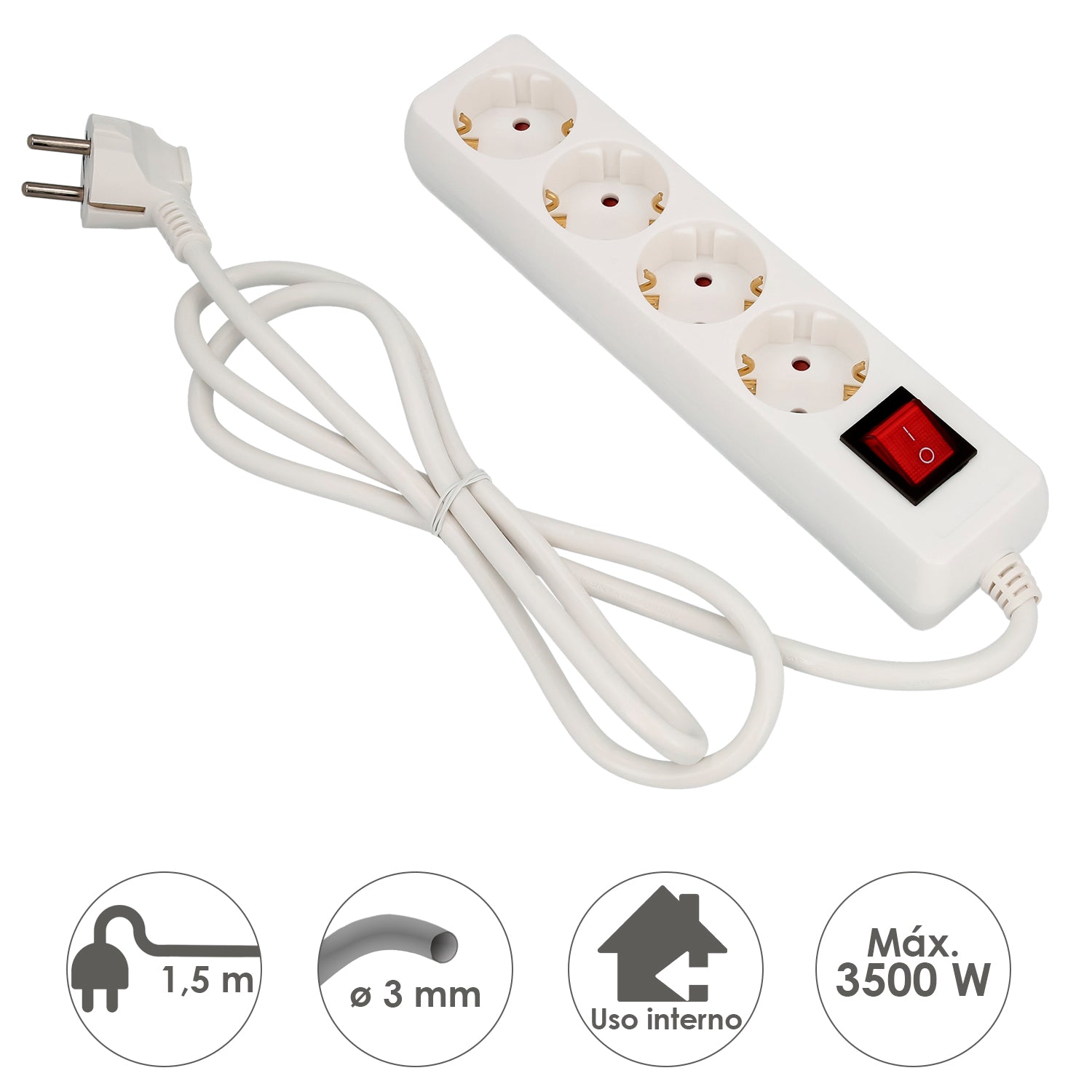 Base Multiple 4 Tomas Con Toma De Tierra Con Interruptor