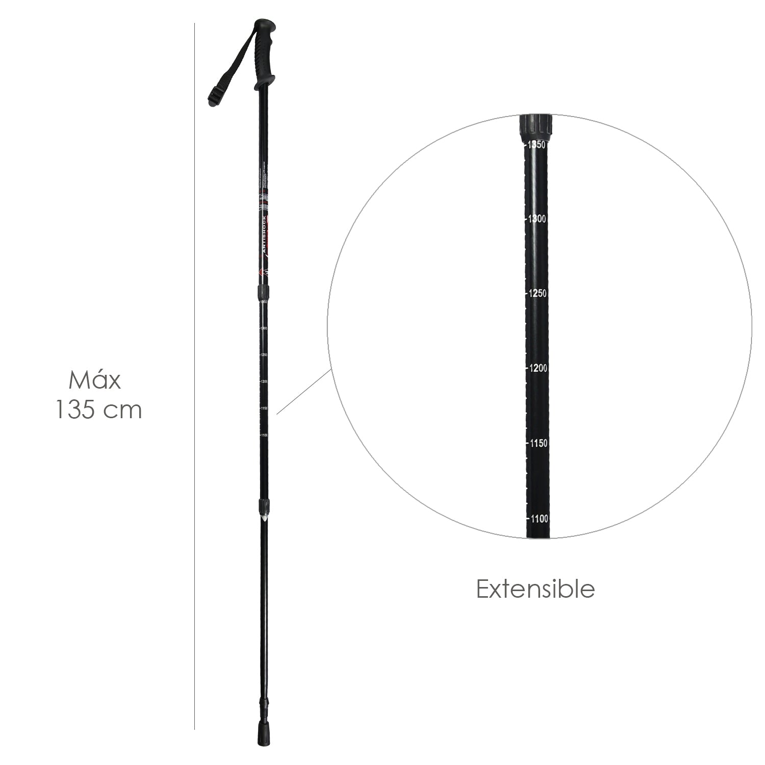 Baston Bordon Caminar Extensible 0,65-1,35 metros Negro