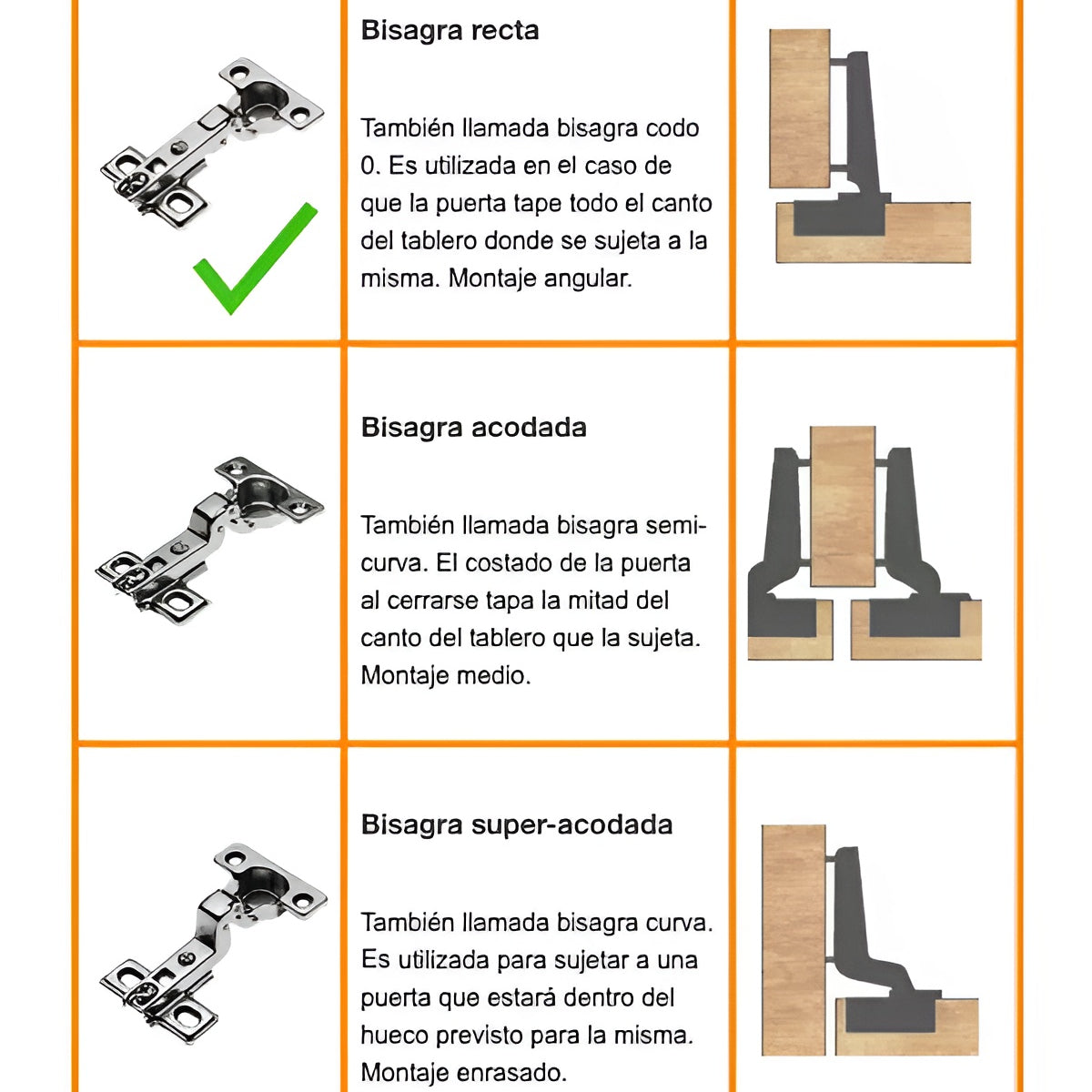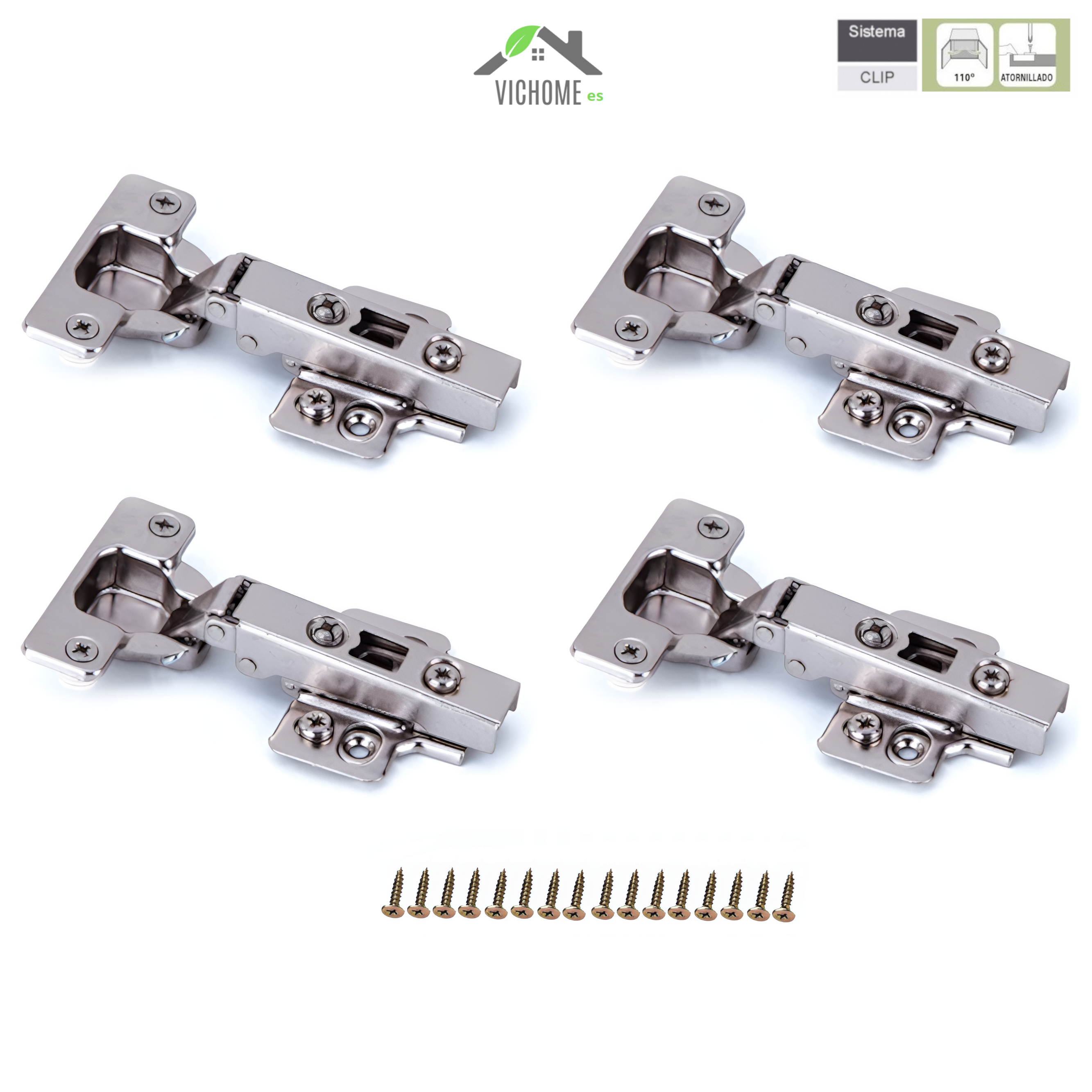 Bisagras para puertas de cocina de madera de cazoleta 35 mm rectas para muebles armarios cocinas baños hogar apertura 110º bases regulables