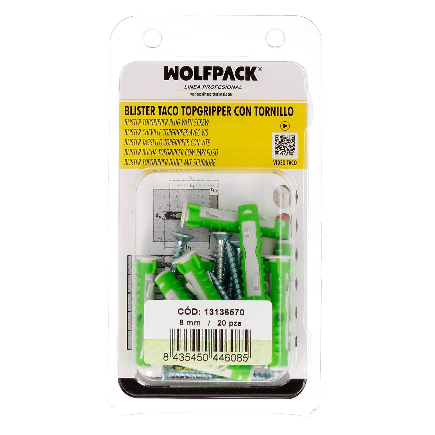 Blister Tacos Topgripper Bimaterial Con Tornillos Ø 8 mm. 20 Piezas Taco Anclaje Universal, Taco Hormigon, Taco Pladur