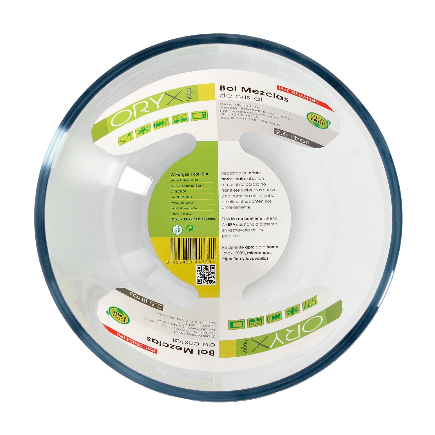 Bol De Cristal, Ideal Para Mezclas. 2.5 Litros. Libre BPA, Cristal De Borosilicato.Ensaladas, Postres, Cocina, Resposteria
