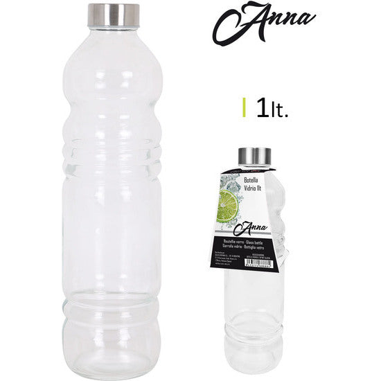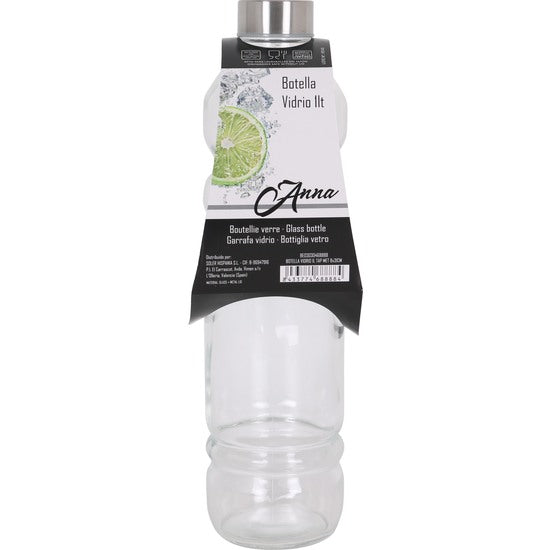 BOTELLA VIDRIO 1L TAPÓN METALIZADA 8X31CM ANNA