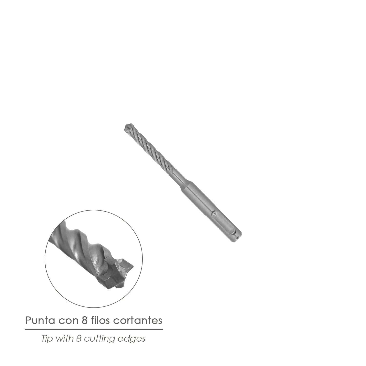Broca Sds Plus 8 Filos Cortantes Especial Para Hormigon Armado Ø 6 x 110 mm. Broca Paredes, Broca Cimientos, Broca Muros
