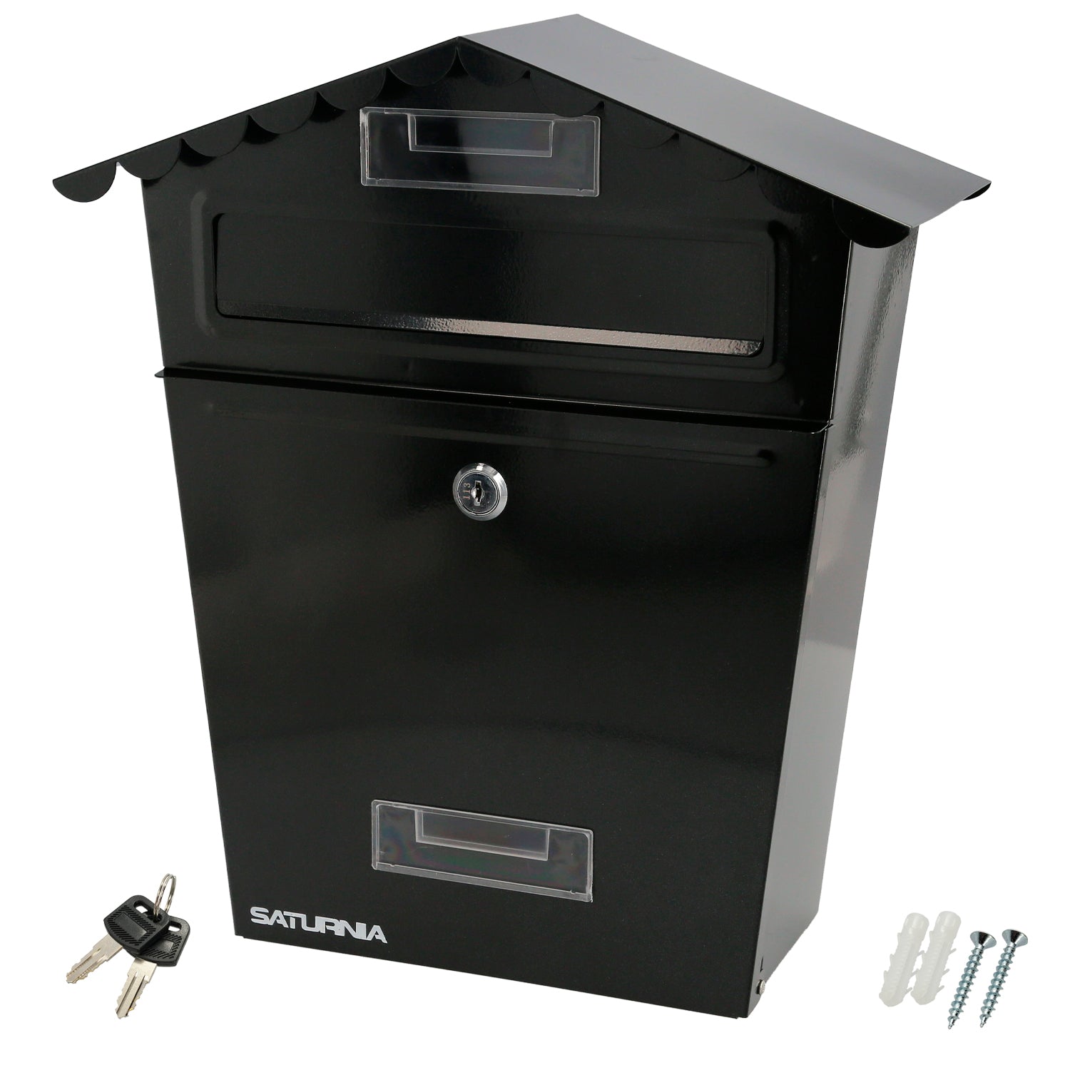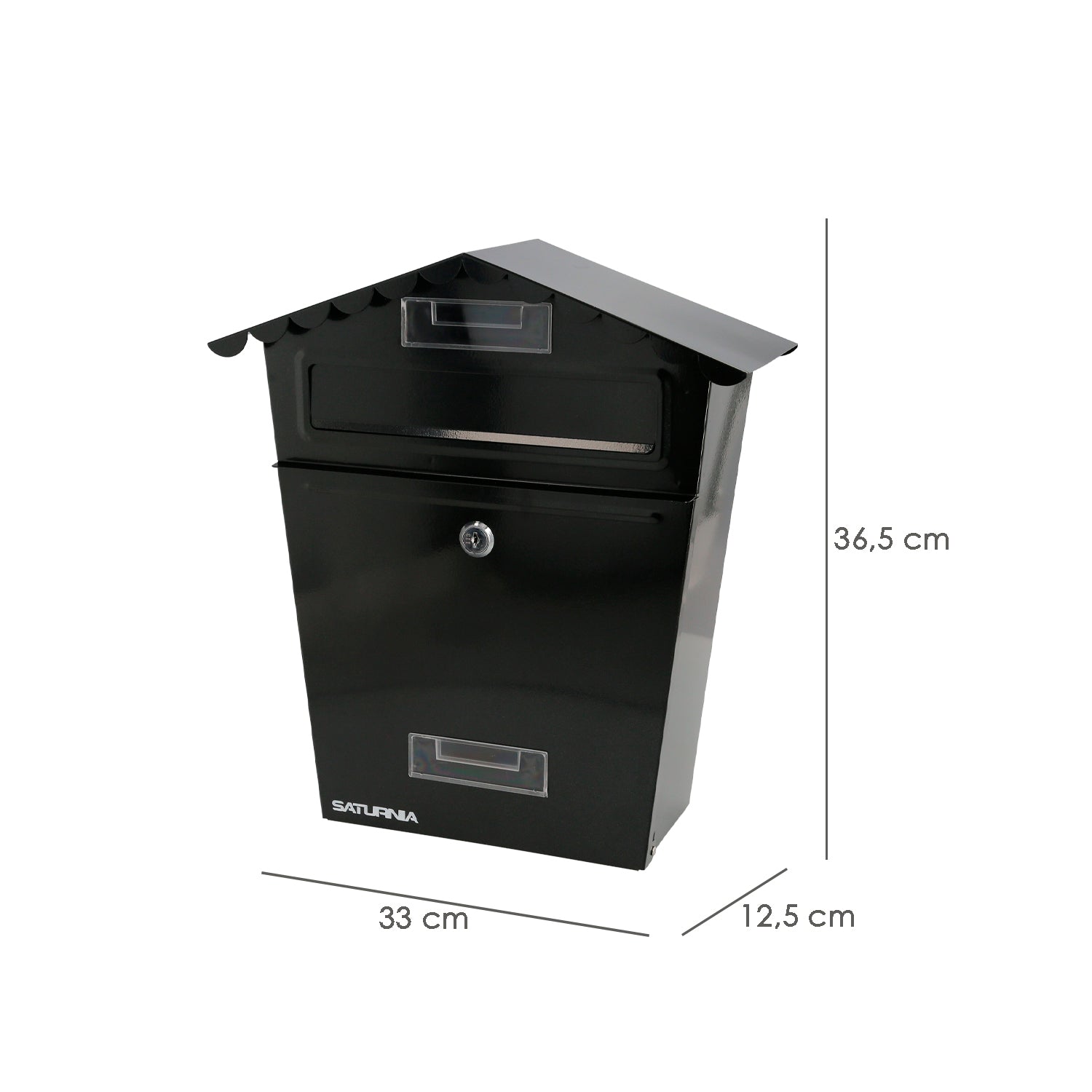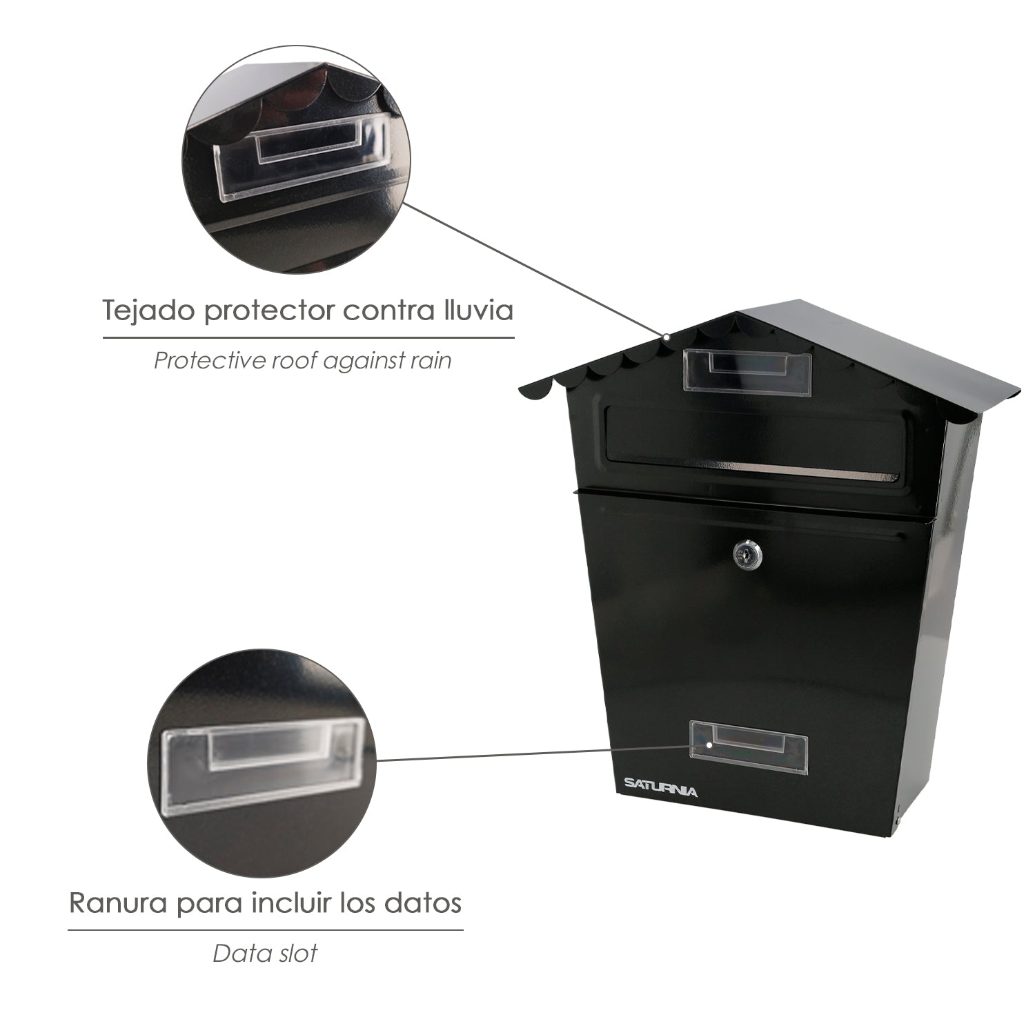 Buzon Exteriores House Negro 330 x 125 x 365 (Alt.) mm. Con Tejado, Acero Pintado. Buzon Pared, Buzon Cartas, Buzon Correos