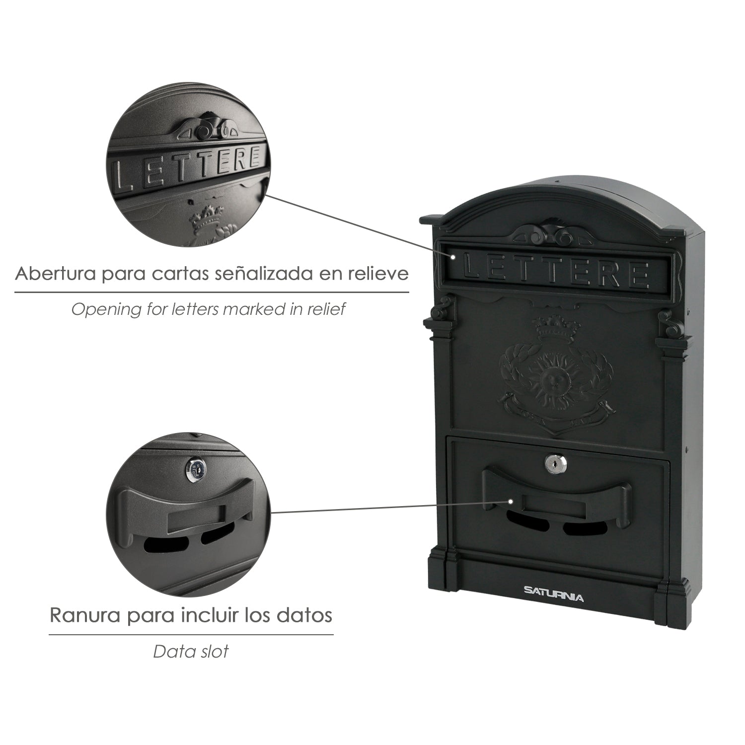 Buzon Jardín Aluminio Fundido Palace Gris Antracita 255 x 410 x 90 mm.