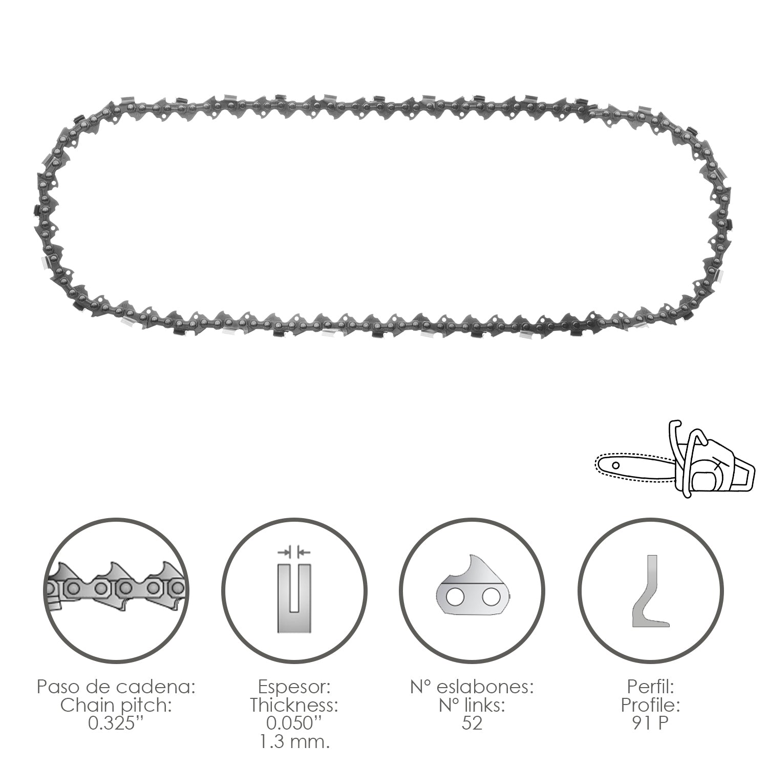 Cadena Motosierra 0.325" / 0.050" 1,3 mm. / 66 Eslabones / 91 P