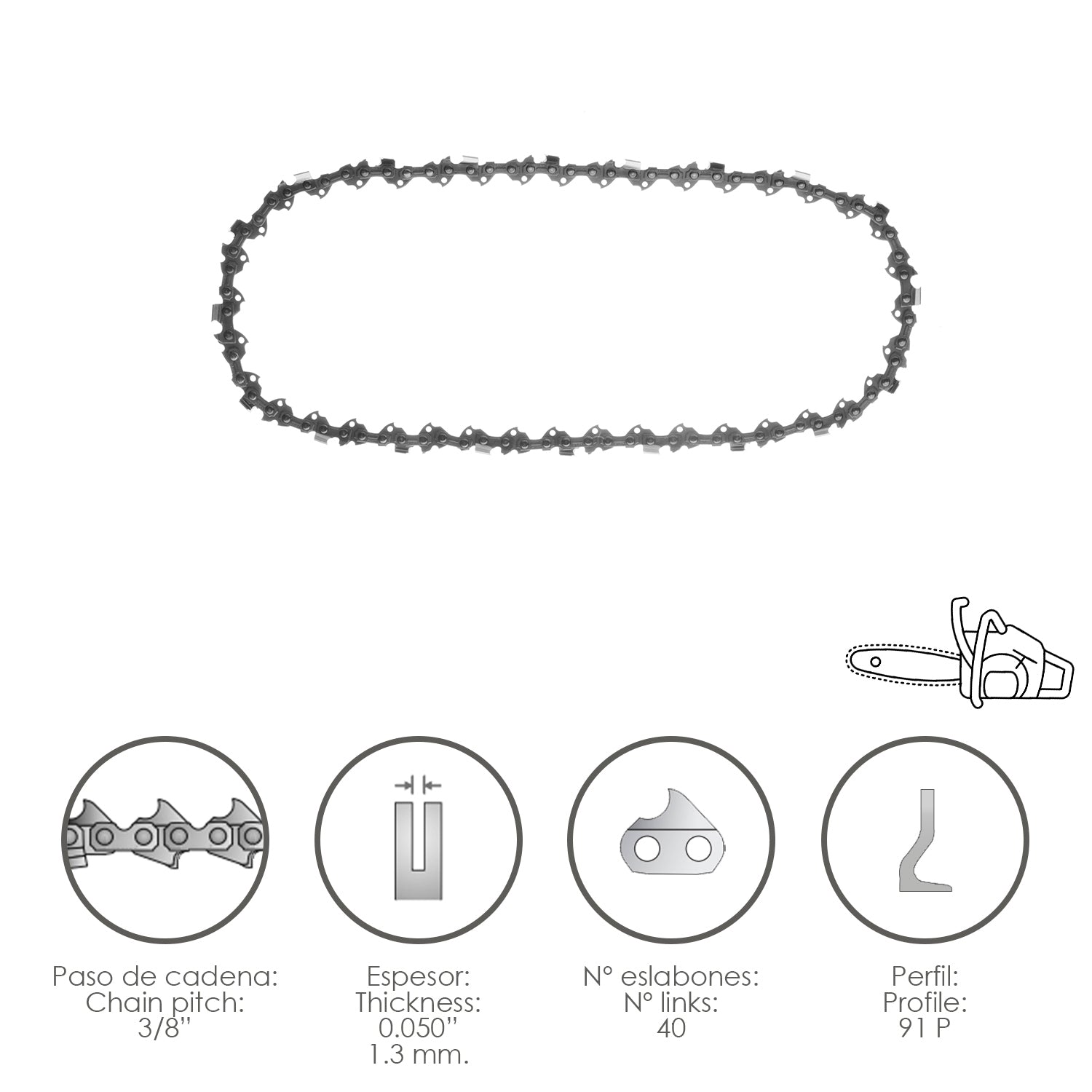 Cadena Motosierra 3/8" / 0.050" 1,3 mm. / 40 Eslabones / 91 P