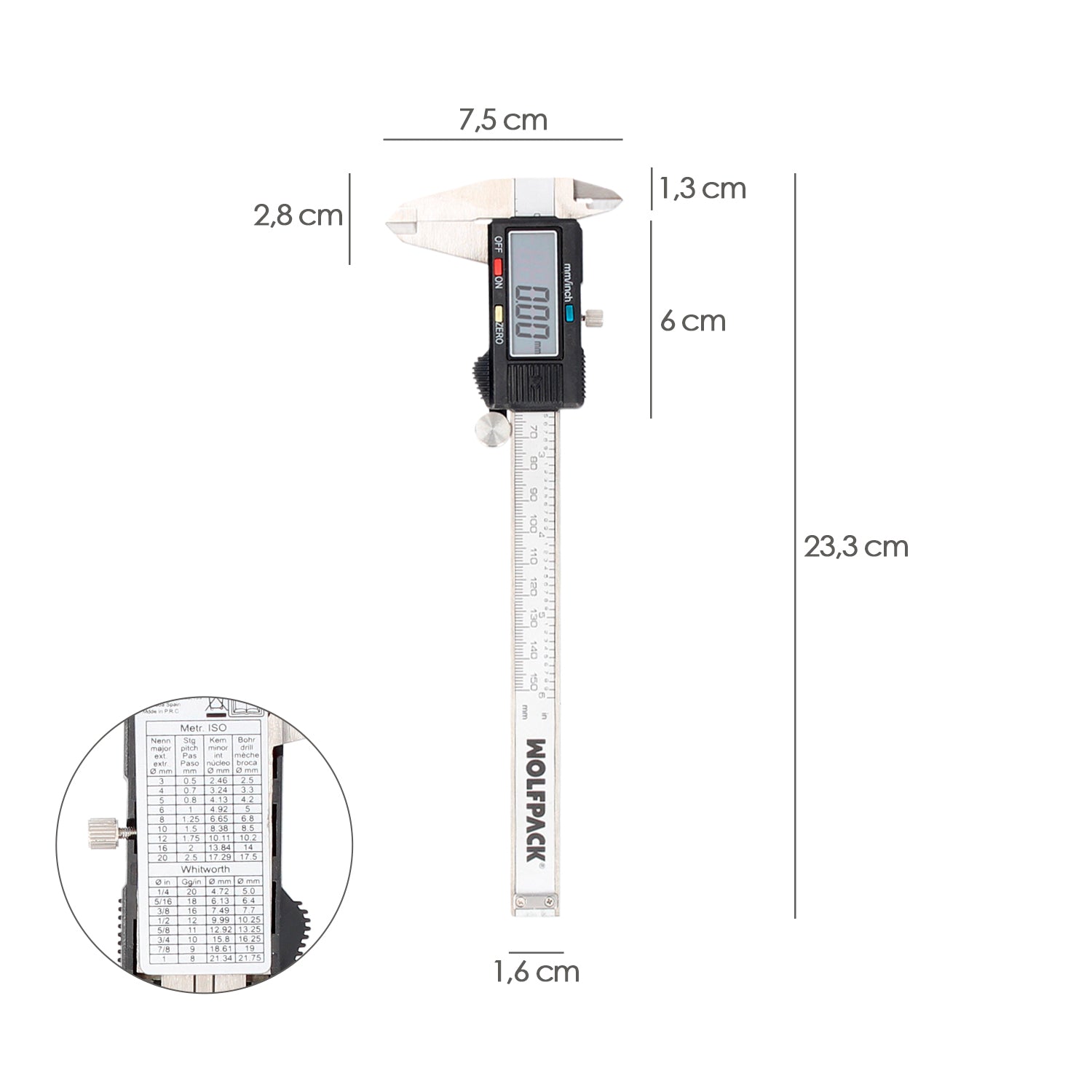 Calibre Digital Acero Inoxidable 150 mm. Pie de Rey, Paquimetro. Pantalla LCD, Boton de Bloqueo