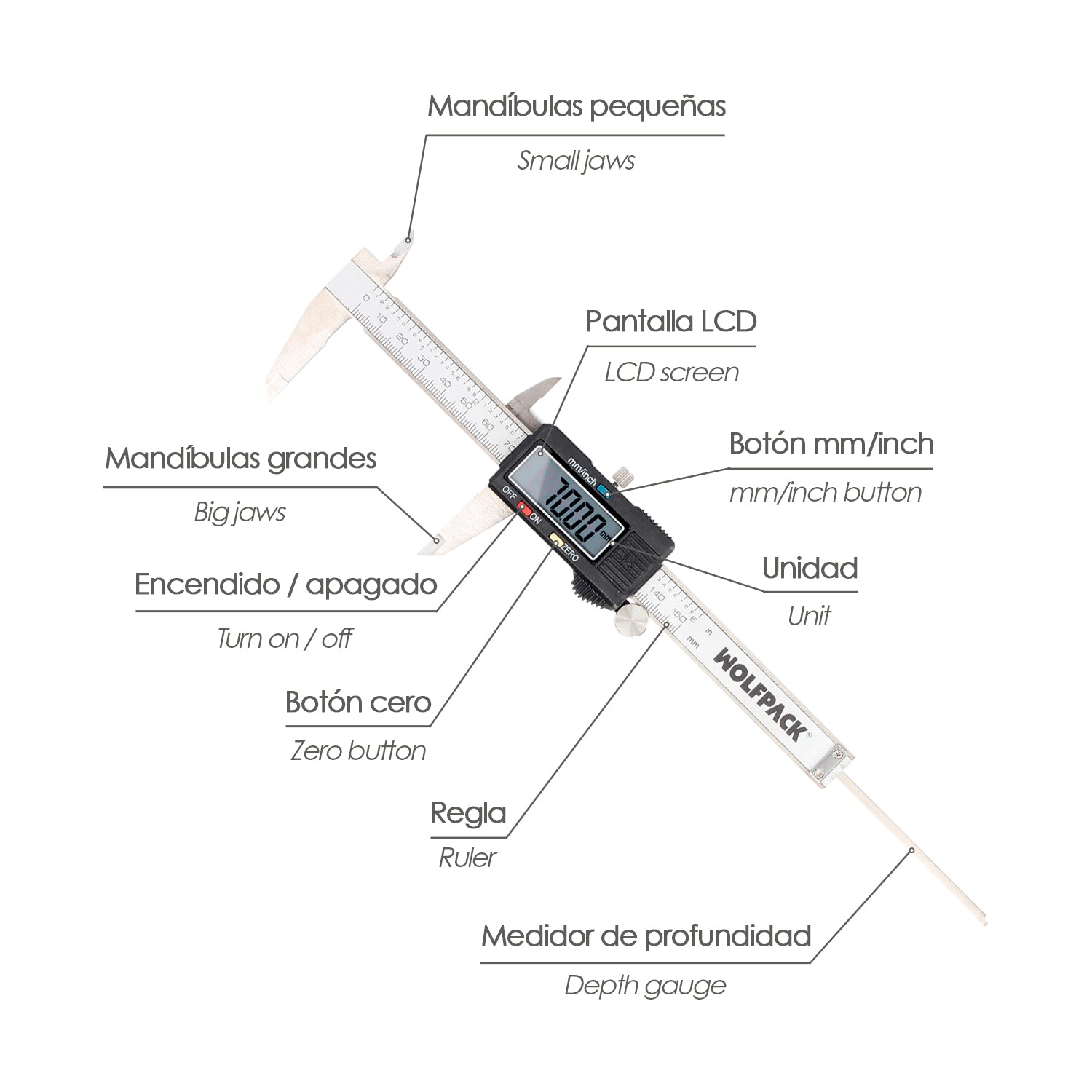 Componentes incluidos pie de rey