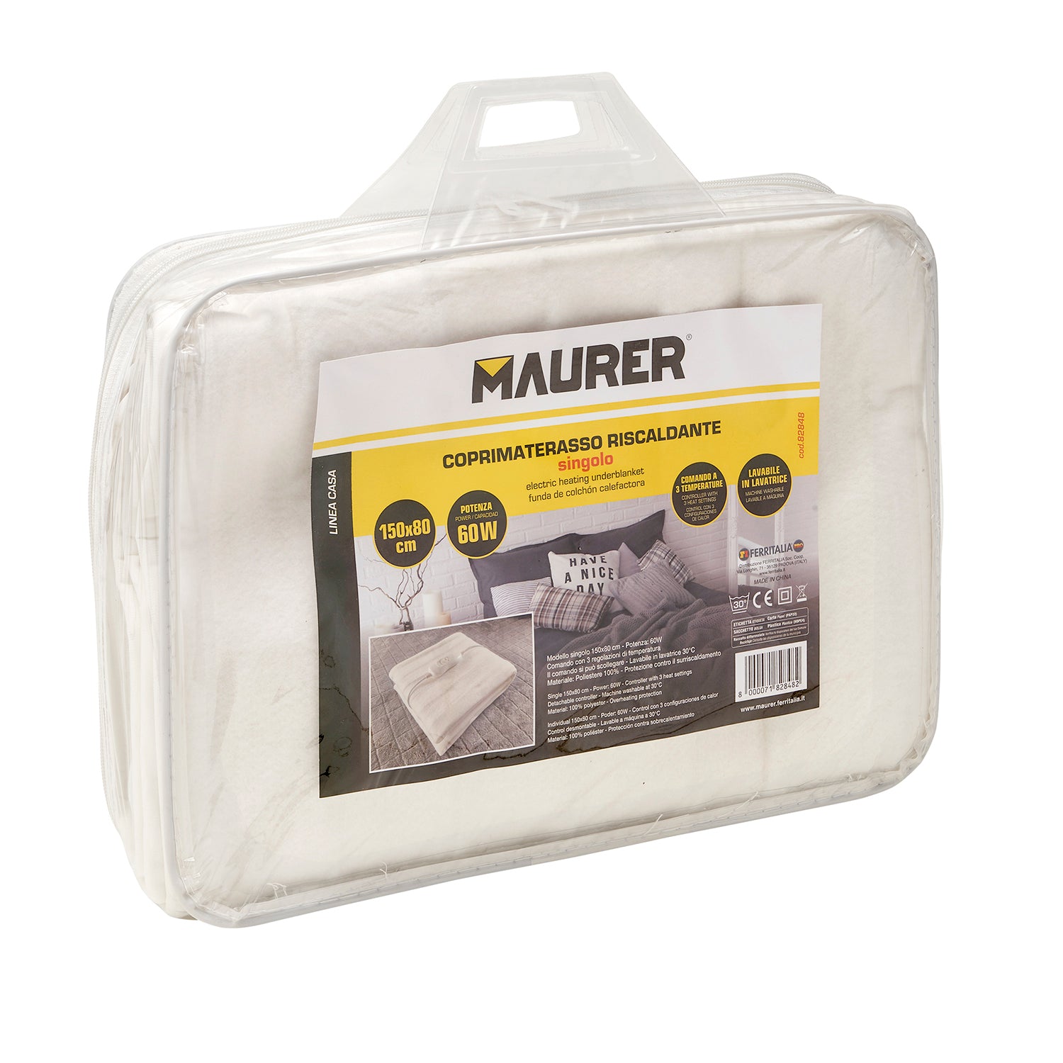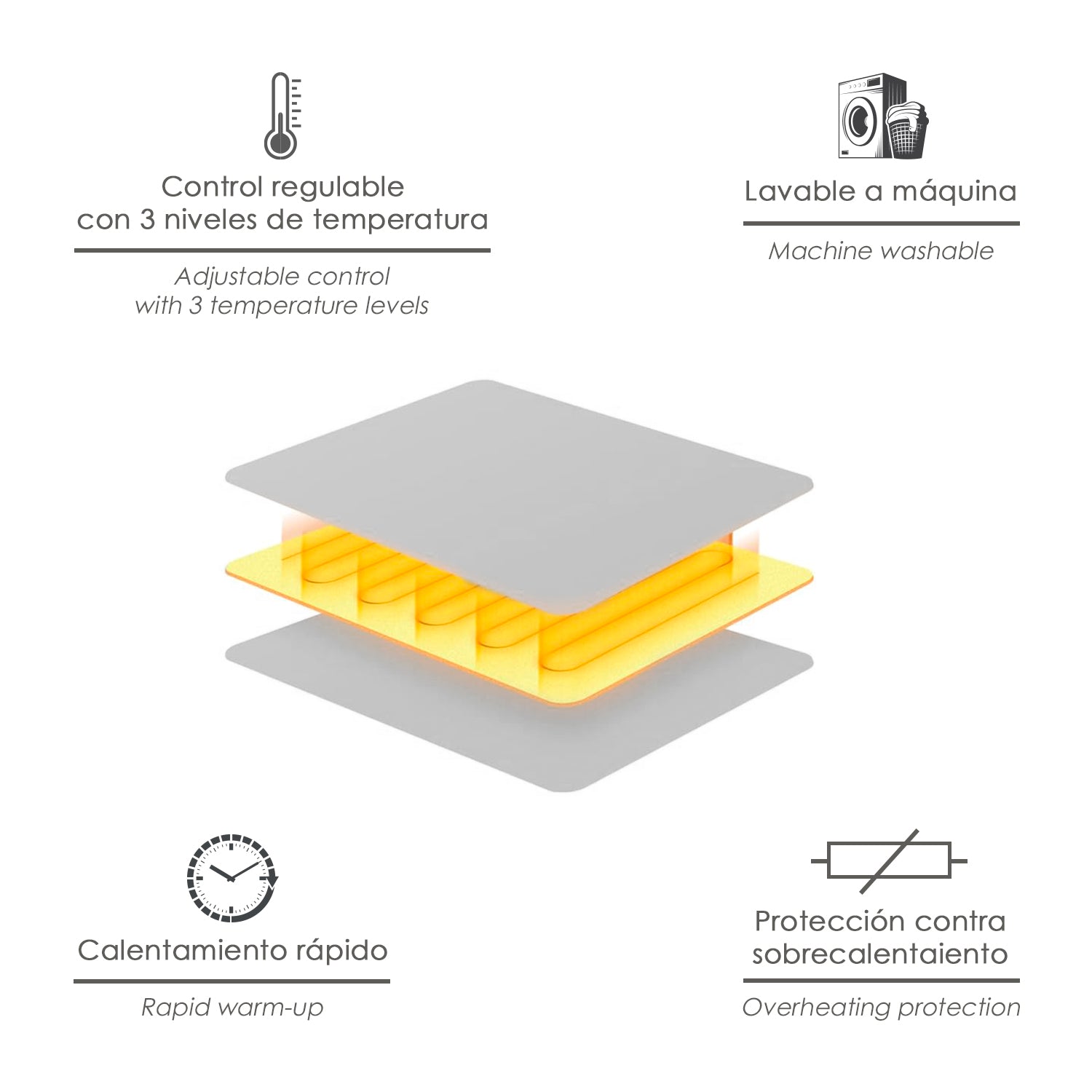 Calientacamas Electrico Individual 150x80 cm. 60 Watt. 3 Niveles De Temperatura. Lavable