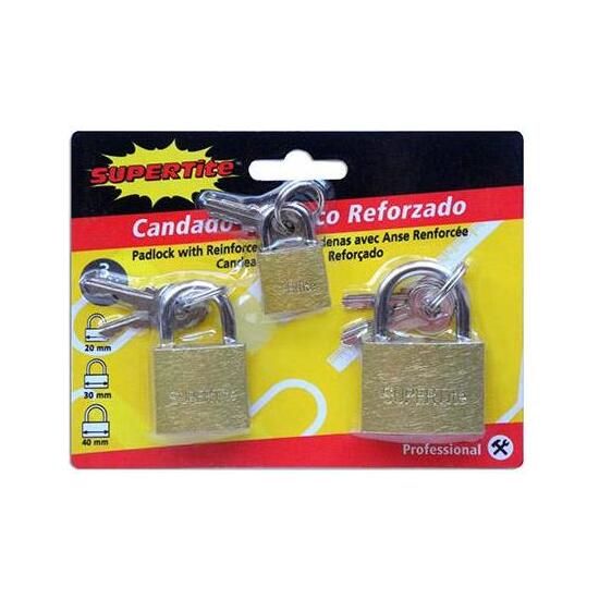 CANDADO CON ARCO REFORZADO 20 + 30 + 40MM - 3 UDS
