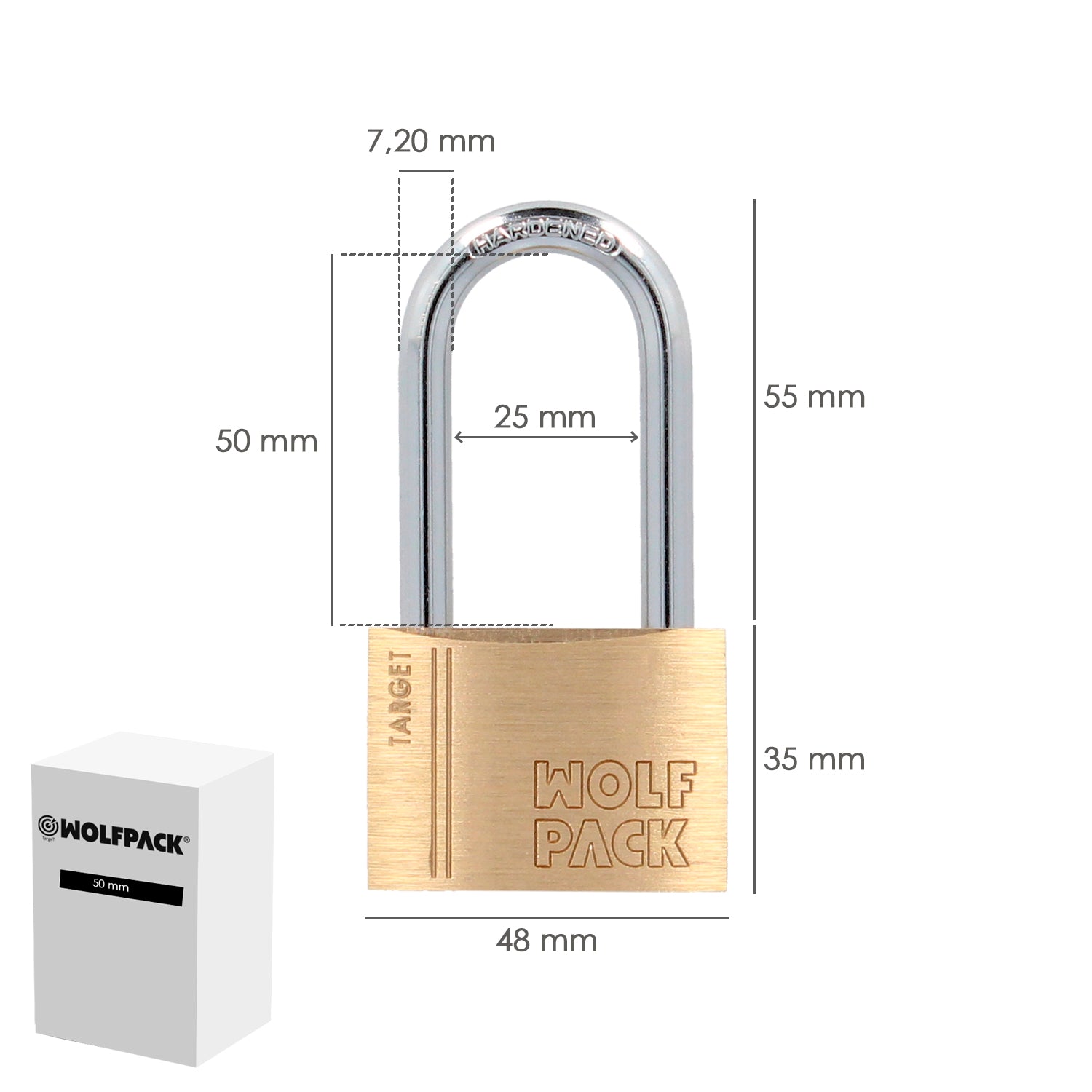 Candado Laton Arco Largo 50 mm. Arco Endurecido. Candado Maletas, Candado Taquillas, Candado Puertas