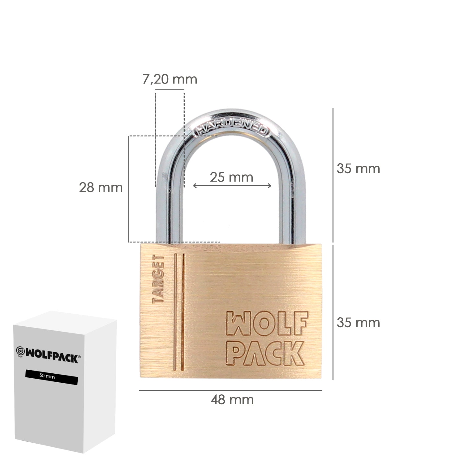 Candado Laton Arco Normal 50 mm. Serie Target. Arco Endurecido. Candado Maletas, Candado Taquillas, Candado Puertas
