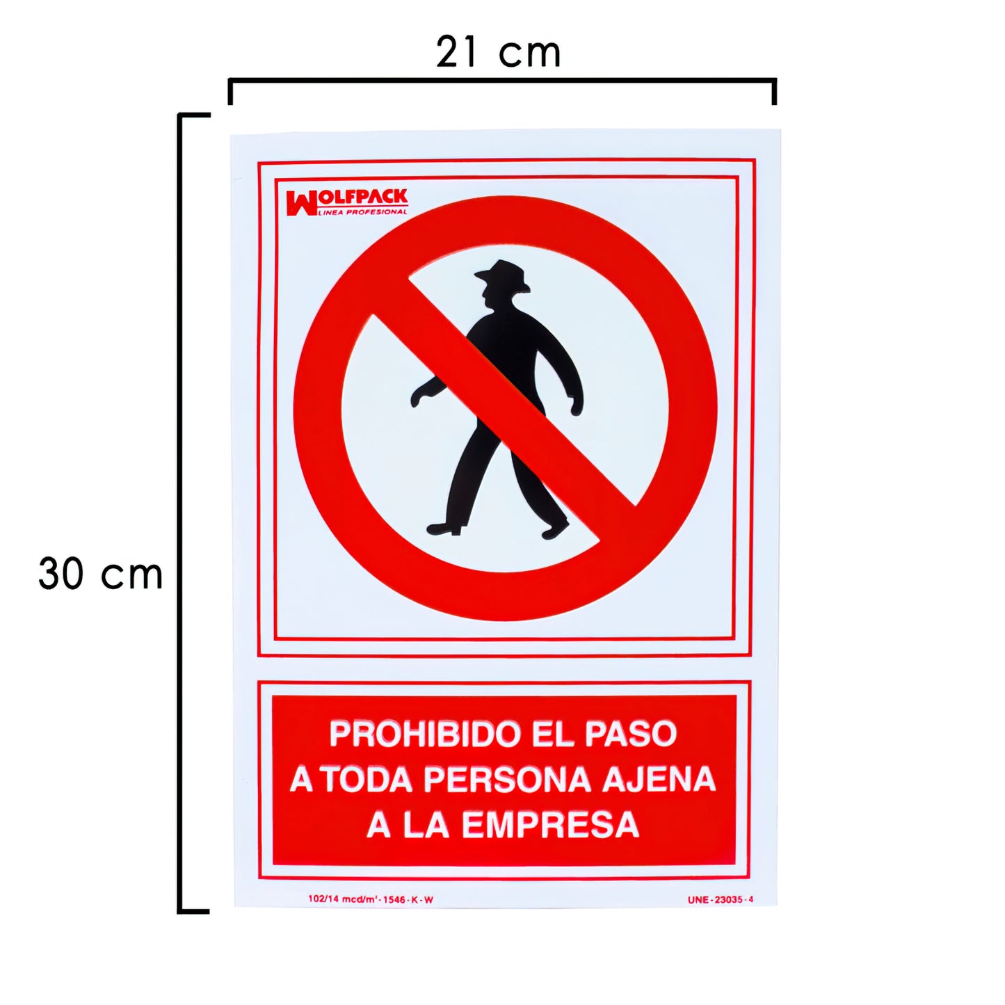 Cartel Prohibido el Paso Persona Ajena Empresa 30x21 cm.