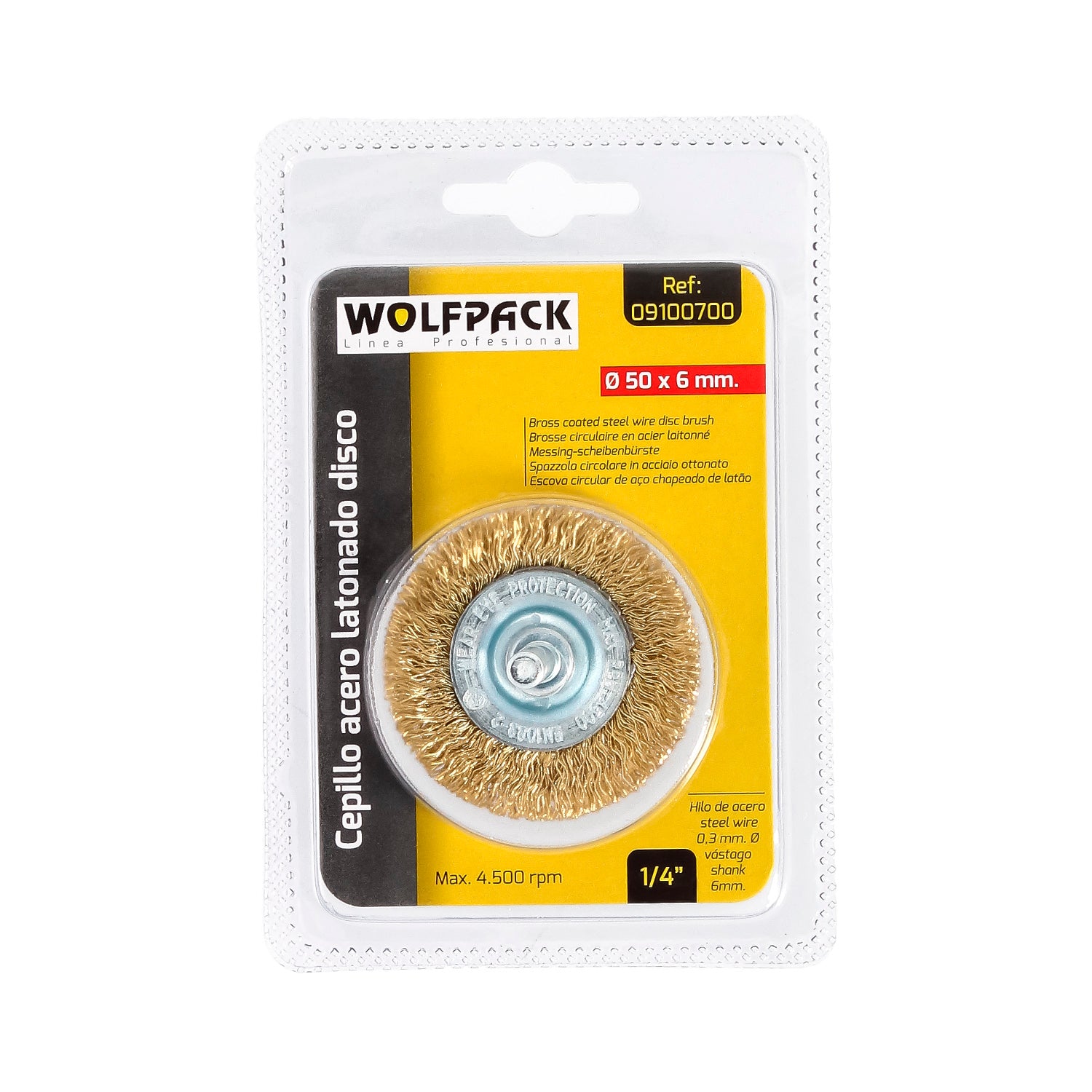 Cepillo Acero Latonado Para Taladro. Disco Ø 50 mm. Espiga 1/4" Cepillo Taladro Alambre Latón, Cepillo Limpieza, Cepillo Pulir.