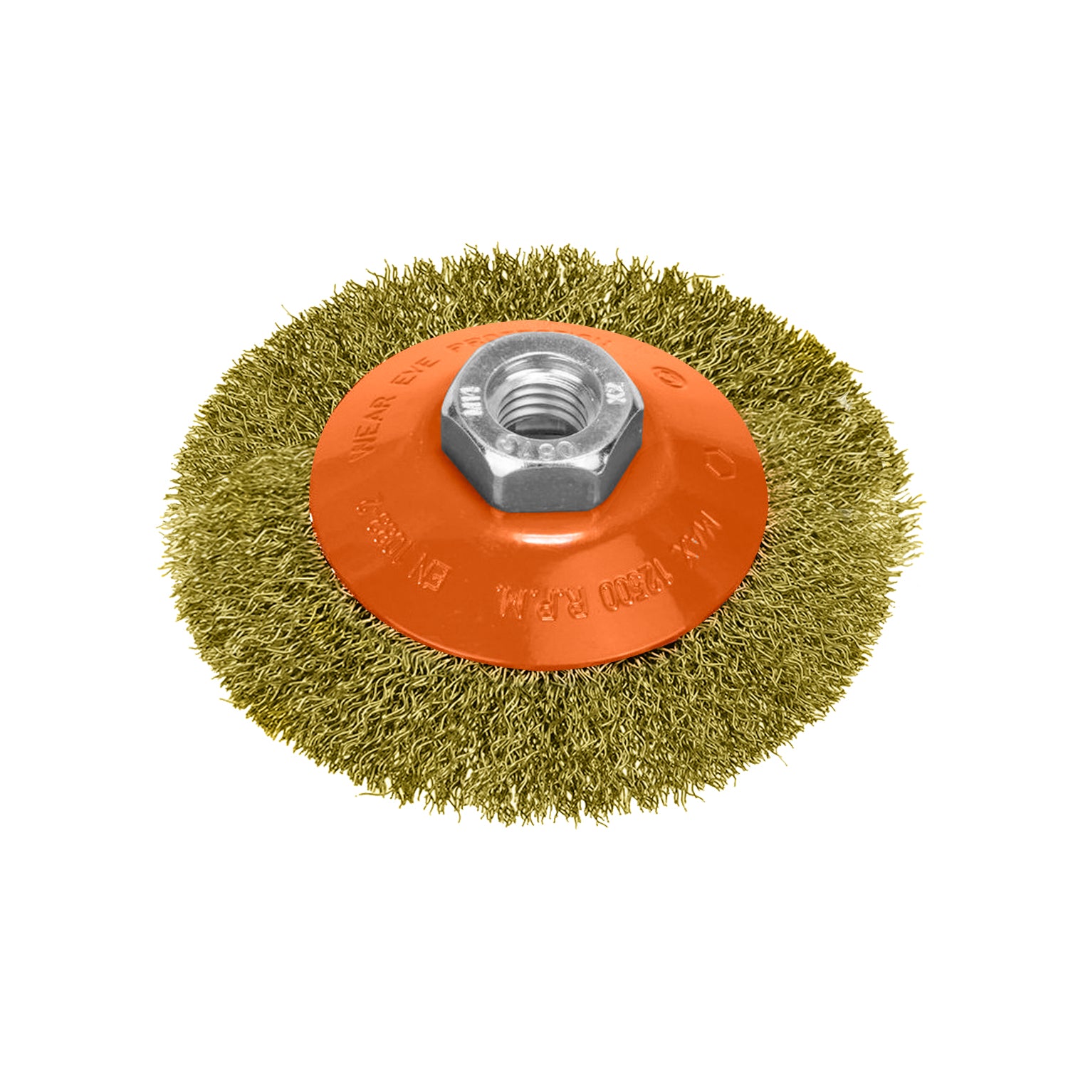 Cepillo Oblicuo Con Alambre De Acero Latonado Rosca M14, Ø 100 mm. Alambre de Ø 0,30 mm.