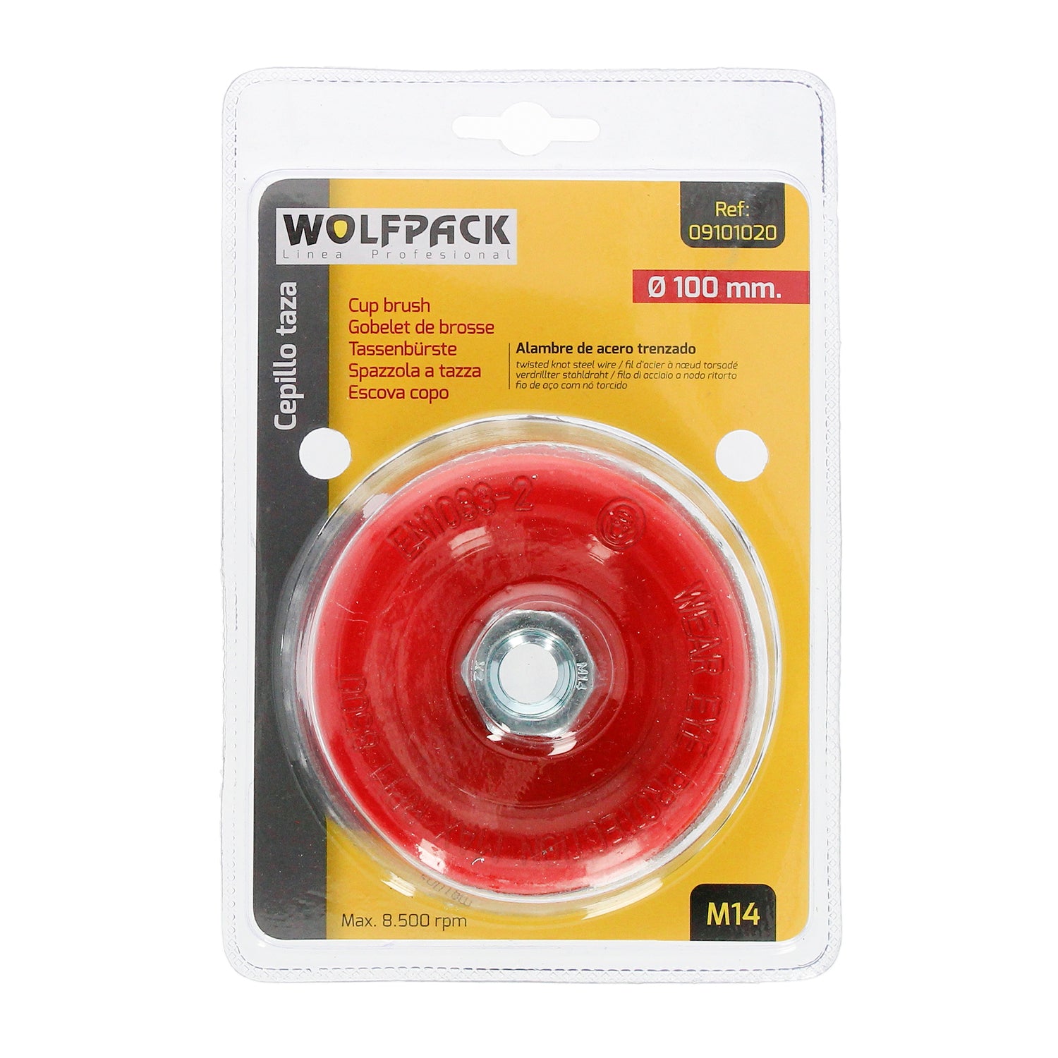Cepillo Taza Con Alambre De Acero Trenzado Rosca M14, Ø 100 mm. Alambre de Ø 0,50 mm.