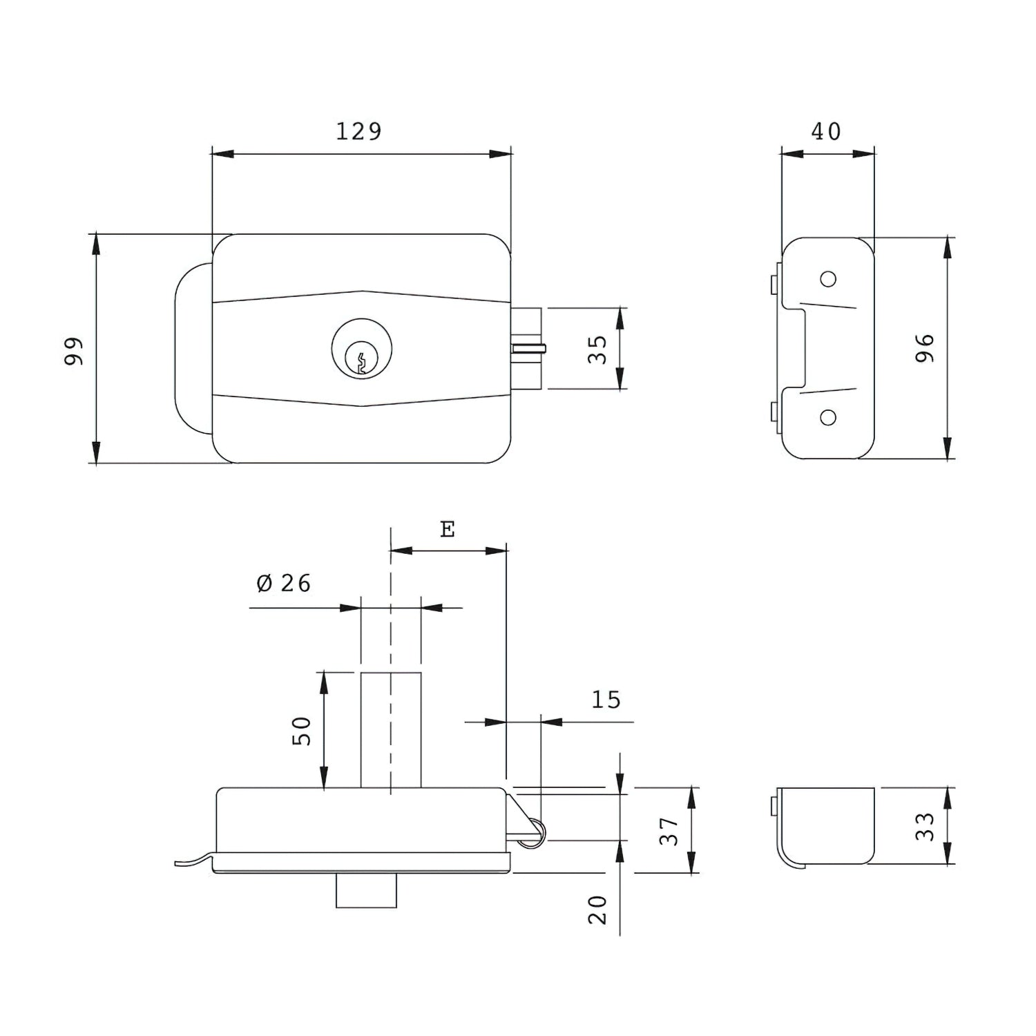 Cerradura Iseo 500-60 mm. Eléctrica Cilindro