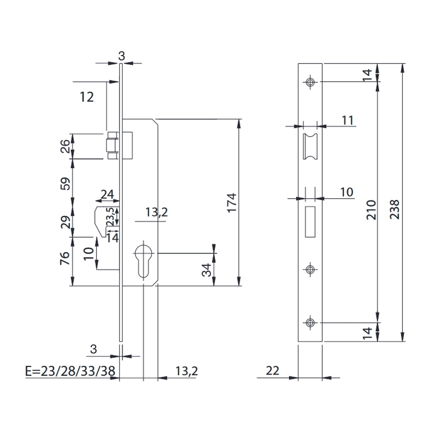 Cerradura Iseo 741540-28 mm. Frontal Cromo Resbalón