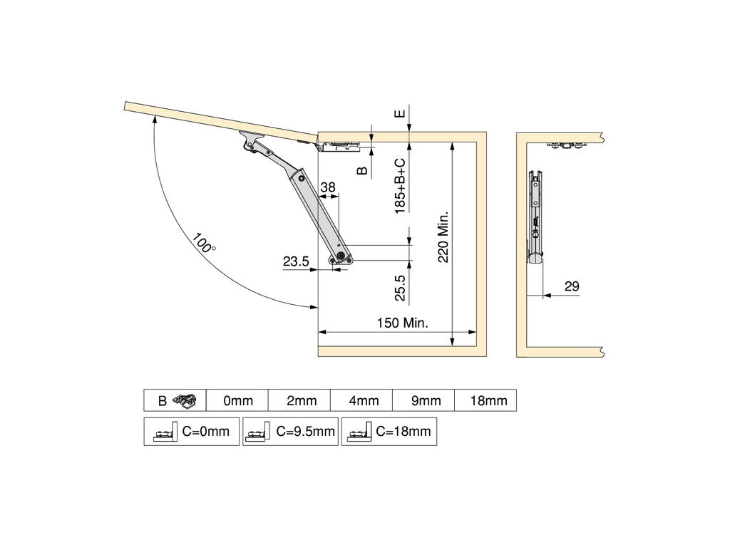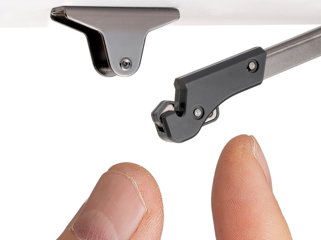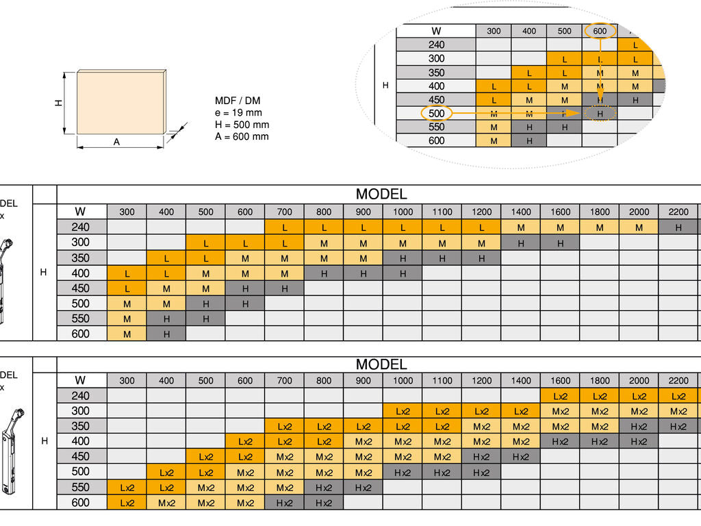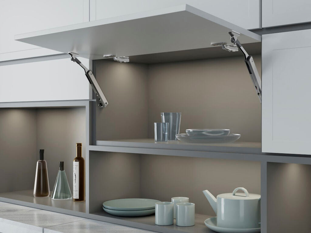 • Un mecanismo elevable, un soporte de costado, un soporte de puerta, tornillería de montaje, plantillas de insytalación e instrucciones de montaje.