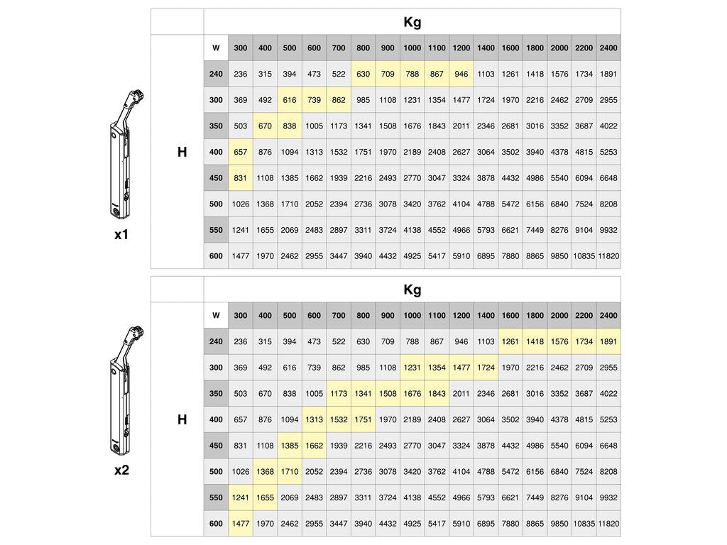Compás para puertas elevables Altius One, Rango de fuerza 576-2200