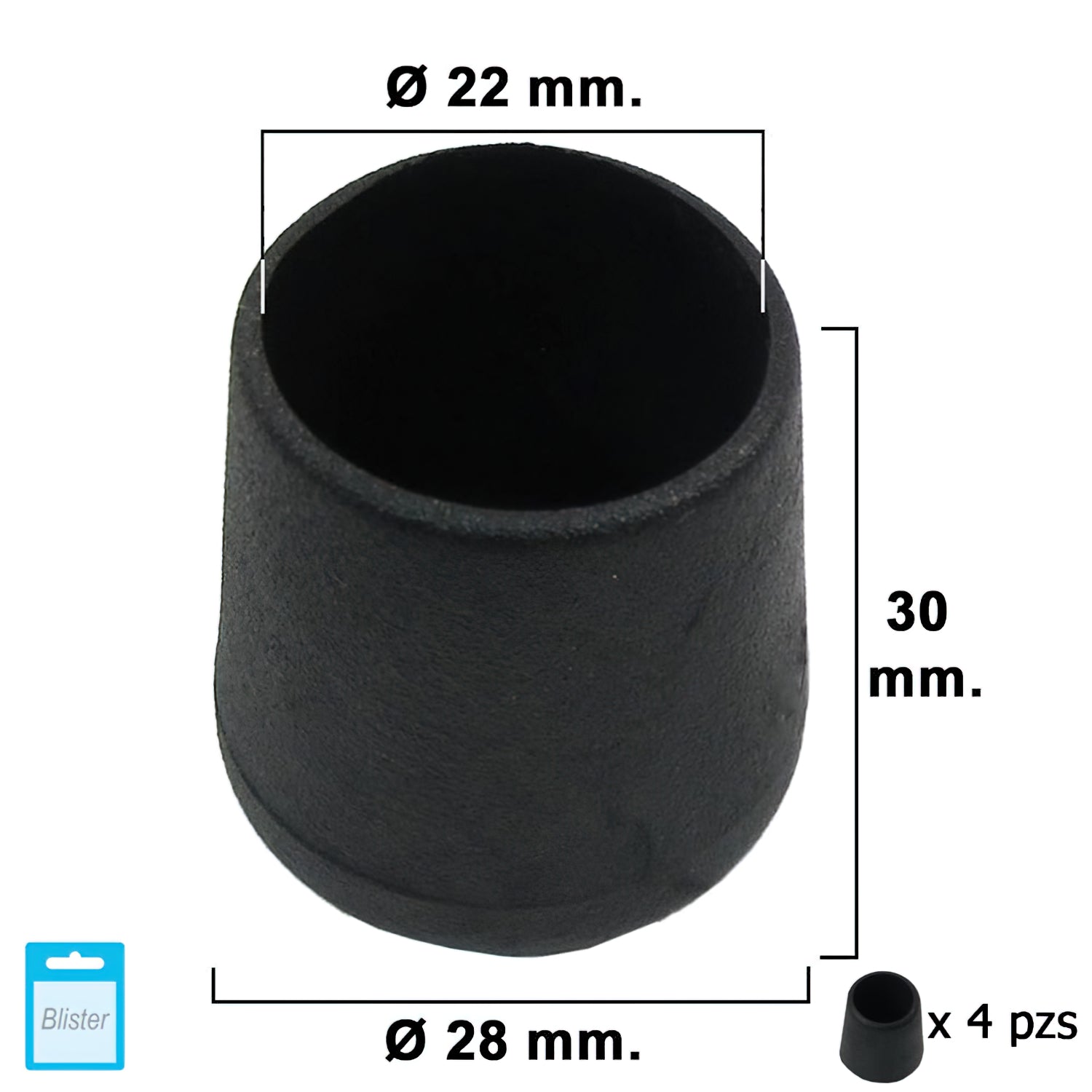 Contera Cónica Negra 22mm. Blister 4 piezas.
