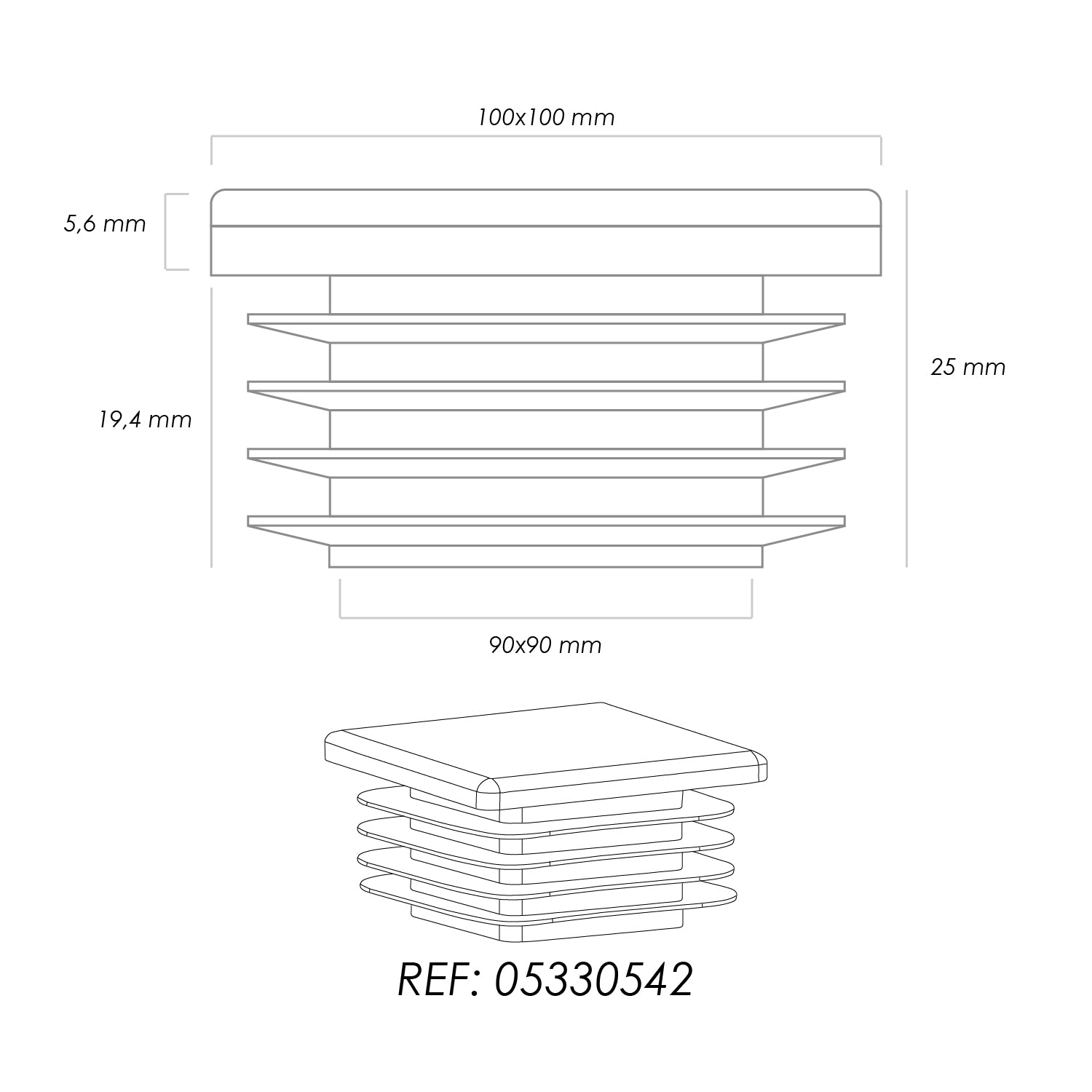 Contera Interior Plastico Cuadrada 100x100 mm. Color Negro. Bolsa 25 Unidades. Contera Mesa, Silla, Muebles, Estanteria