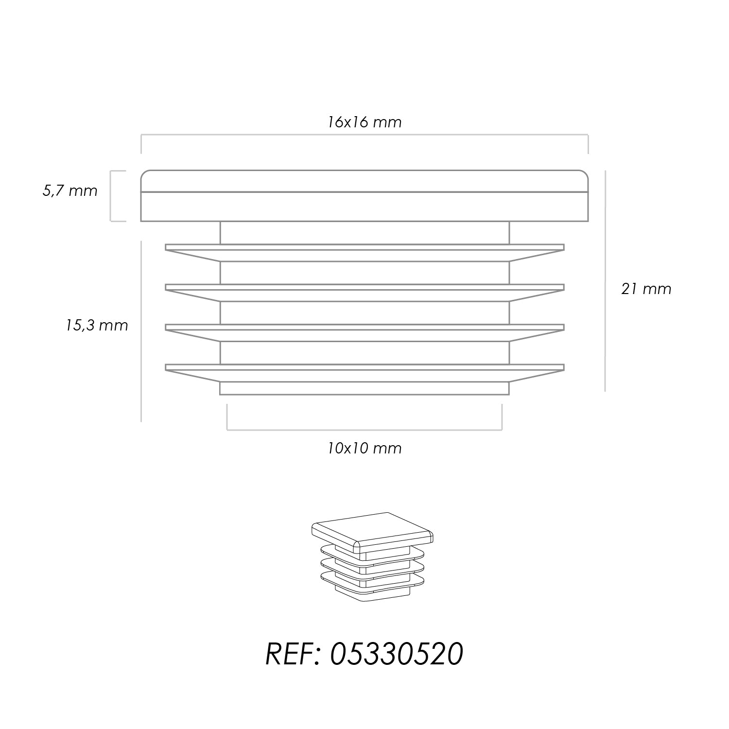 Contera Interior Plastico Cuadrada 16x16 mm. Color Negro. Bolsa 200 Unidades. Contera Mesa, Silla, Muebles, Estanteria