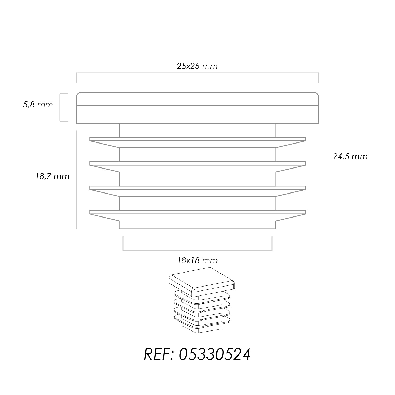 Contera Interior Plastico Cuadrada 25x25 mm. Color Negro. Bolsa 200 Unidades. Contera Mesa, Silla, Muebles, Estanteria