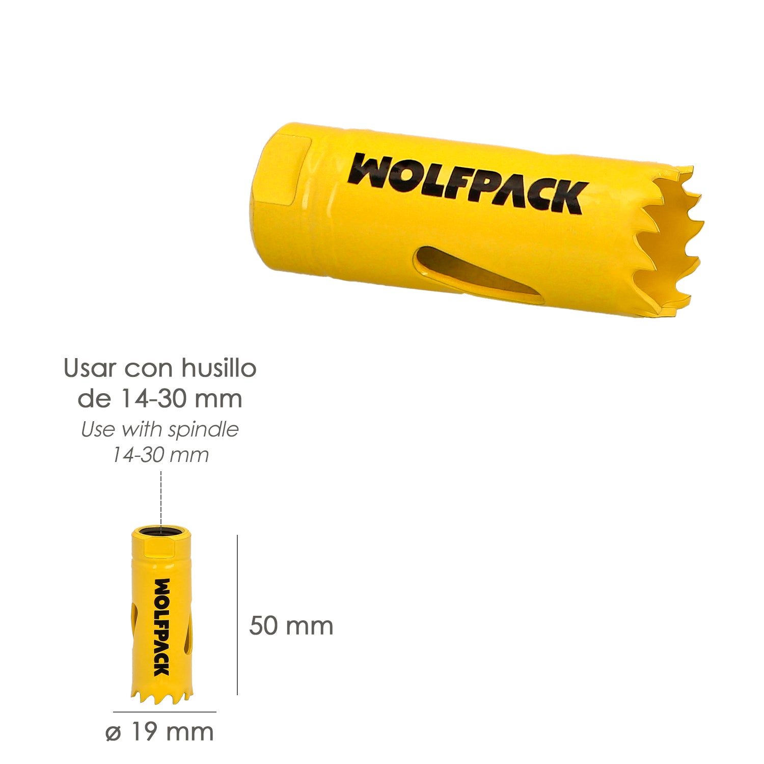Corona Sierra Bimetal Ø 19 mm. Templado Termico, Base Reforzada. Corona Madera, Broca Agujeros Madera, Acero, Hierro, Plasticos