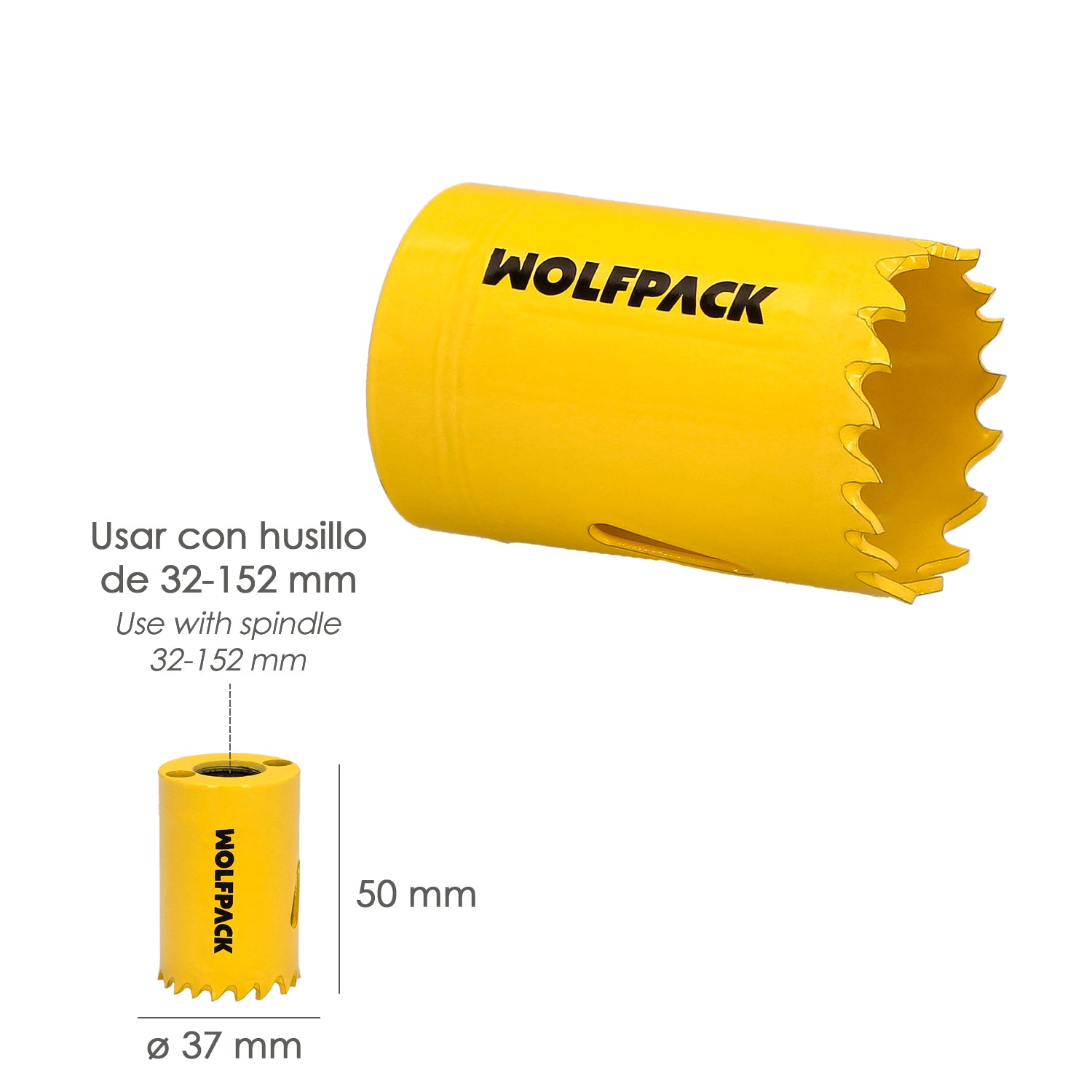 Corona Sierra Bimetal Ø 37 mm. Templado Termico, Base Reforzada. Corona Madera, Broca Agujeros Madera, Acero, Hierro, Plasticos