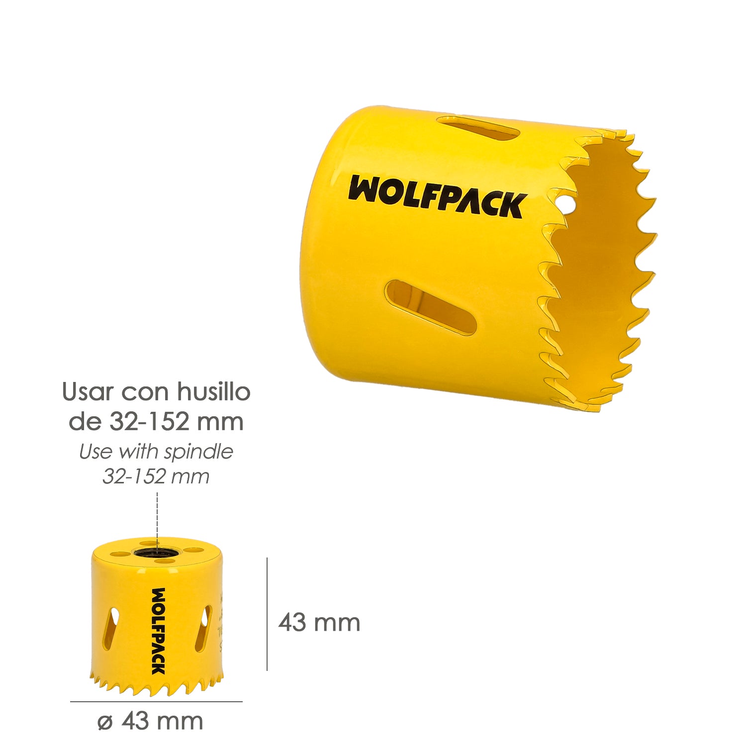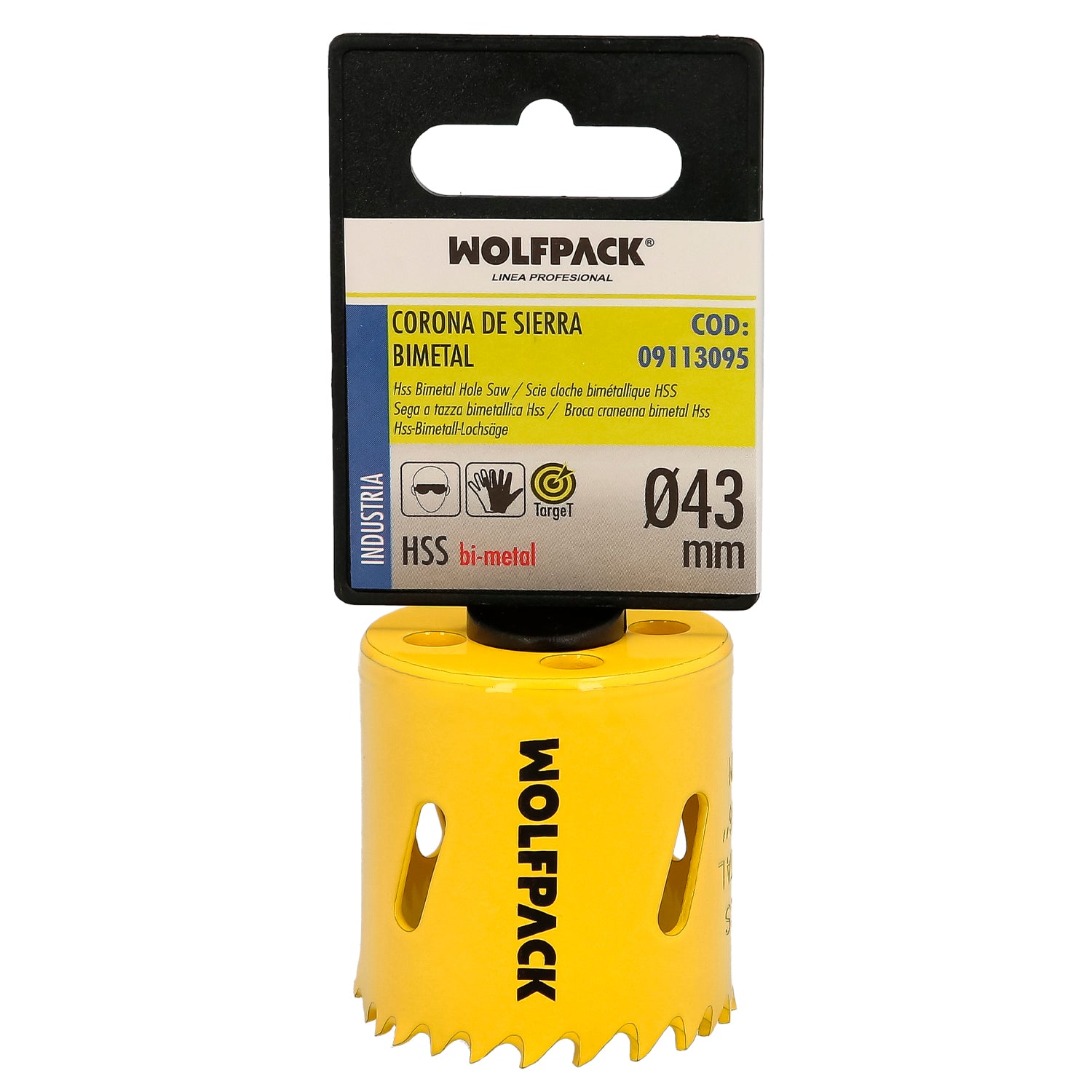 Corona Sierra Bimetal Ø 43 mm. Templado Termico, Base Reforzada. Corona Madera, Broca Agujeros Madera, Acero, Hierro, Plasticos
