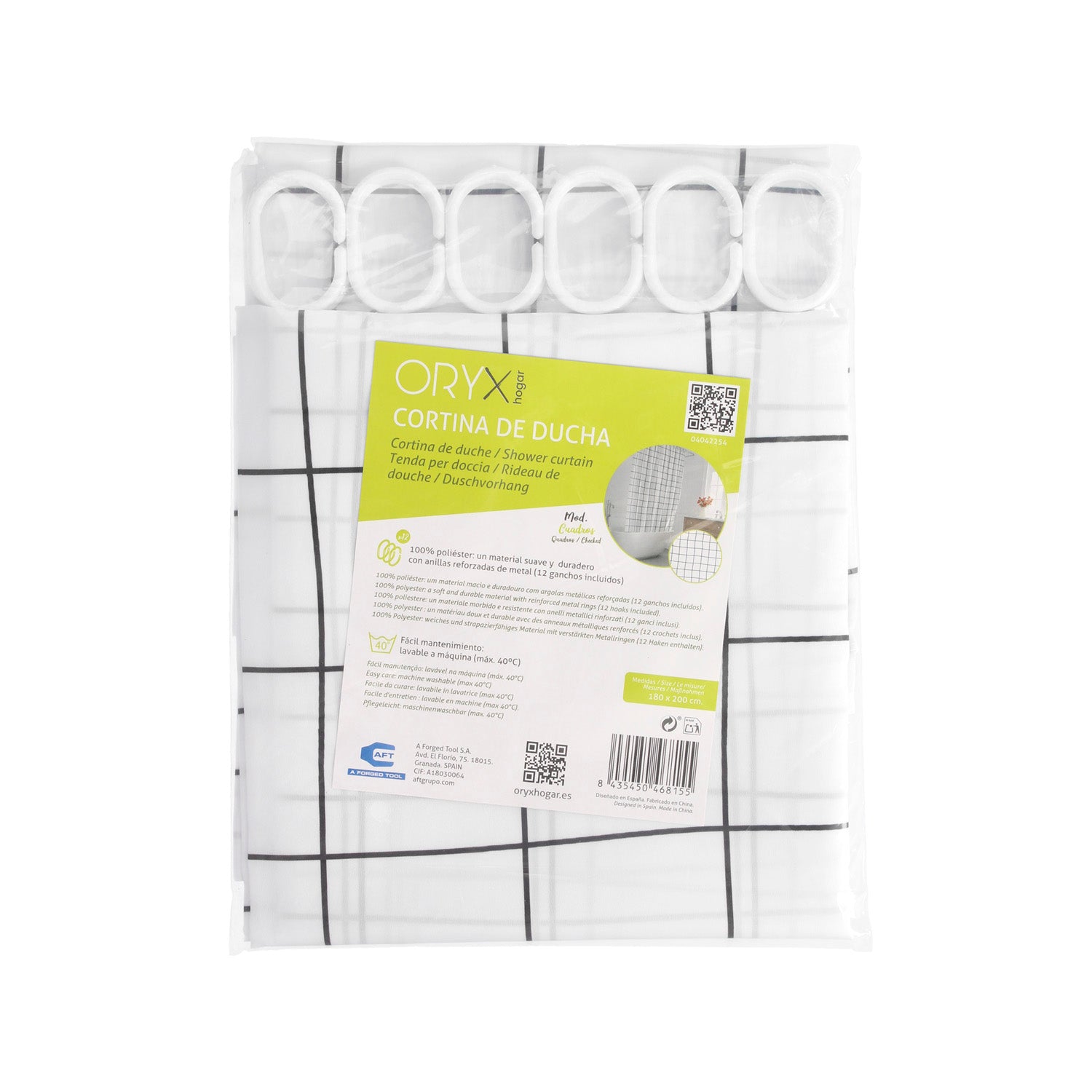 Cortina Ducha Cuadros 180x200 cm. Impermeable