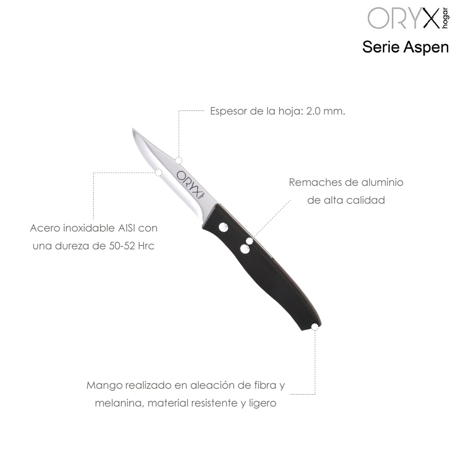 Cuchillo Aspen Mondador Hoja Acero Inoxidable 8 cm. Negro