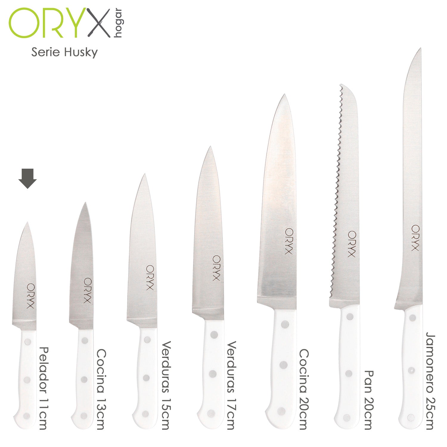 Cuchillo Husky Pelador 11 cm. Hoja Acero Inoxidable, Cuchillo Verduras, Cuchillo Cortar Verduras Mango Ergonomico Blanco